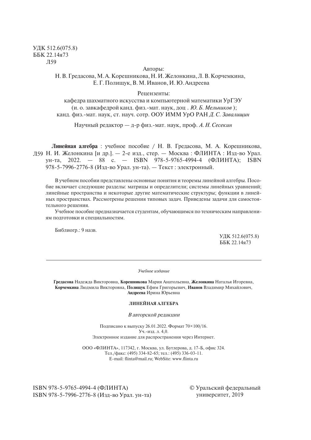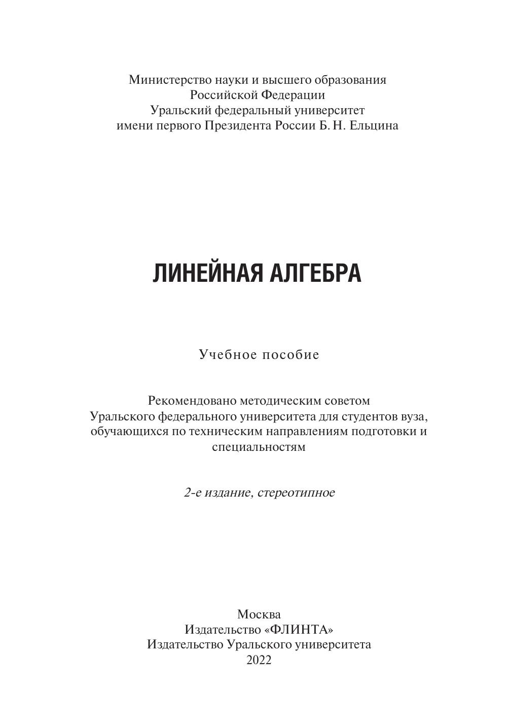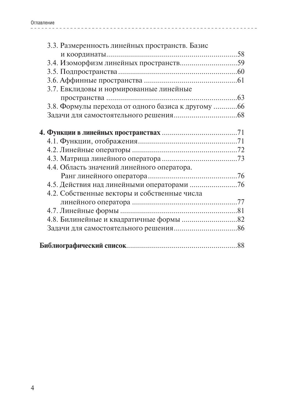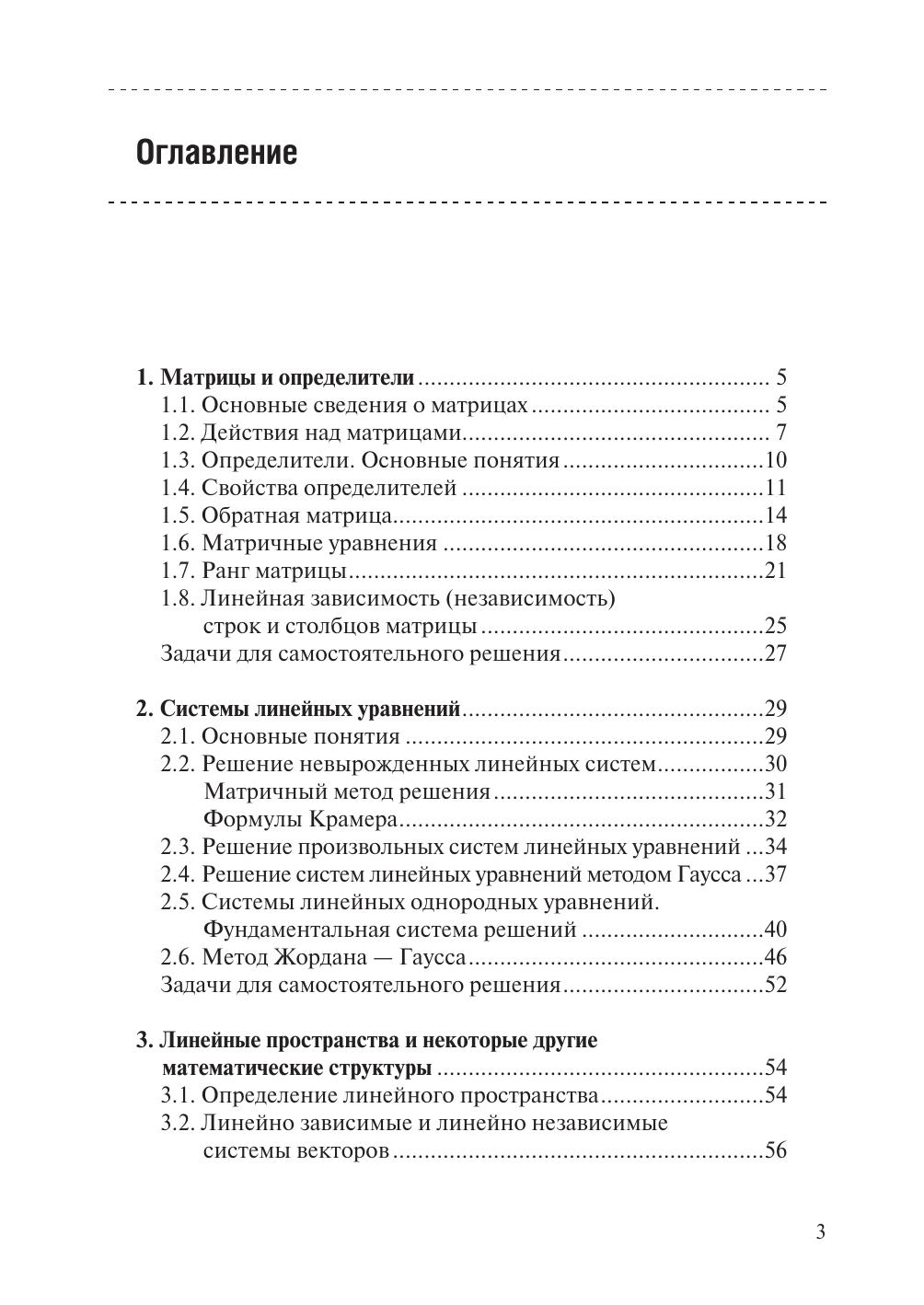 В учебном пособии представлены основные понятия и теоремы линейной алгебры. Пособие включает следующие разделы: матрицы и определители; системы линейных уравнений; линейные пространства и некоторые другие математические структуры; функции в линейных пространствах. Рассмотрены решения типовых задач. Приведены задачи для самостоятельного решения.