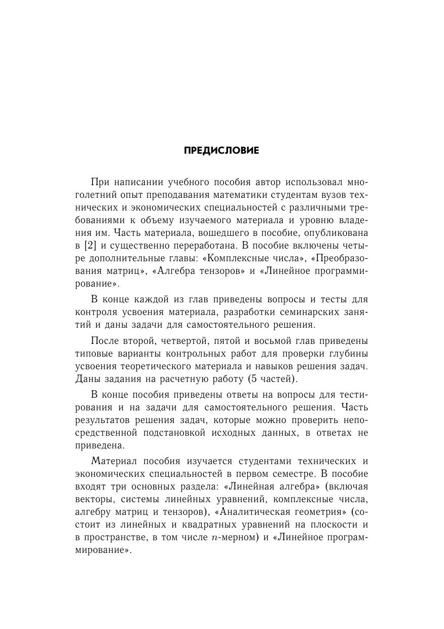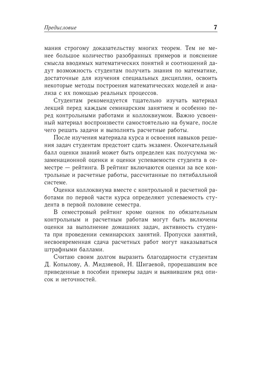 Учебный комплекс соответствует Государственному образовательному стандарту высшего профессионального образования по программам математических дисциплин для студентов технических и экономических вузов, в частности, для специальностей с углубленной математической подготовкой. Методики решения типовых задач приведены в разработках семинарских занятий. Даны условия задач для самостоятельного решения и задания для выполнения расчетных работ. Приведены вопросы, в том числе в виде тестов, для самопроверки усвоения материала, а также типовые контрольные работы для проверки глубины усвоения теоретического материала и навыков решения задач. Учебное пособие может быть использовано для самостоятельного овладения материалом. Методические разработки семинарских занятий будут полезны преподавателям математики.