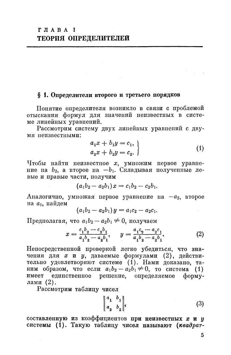 Учебное пособие является введением в линейную алгебру. Изложены темы: теория определителей, теория систем линейных уравнений, действия над матрицами, алгебраическая теория квадратичных форм. Для студентов высших учебных заведений, а также лиц, начинающих самостоятельное изучение высшей алгебры.