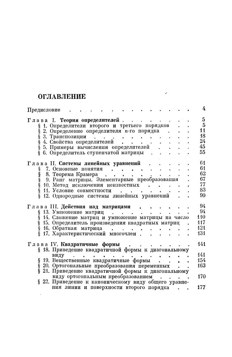 Учебное пособие является введением в линейную алгебру. Изложены темы: теория определителей, теория систем линейных уравнений, действия над матрицами, алгебраическая теория квадратичных форм. Для студентов высших учебных заведений, а также лиц, начинающих самостоятельное изучение высшей алгебры.