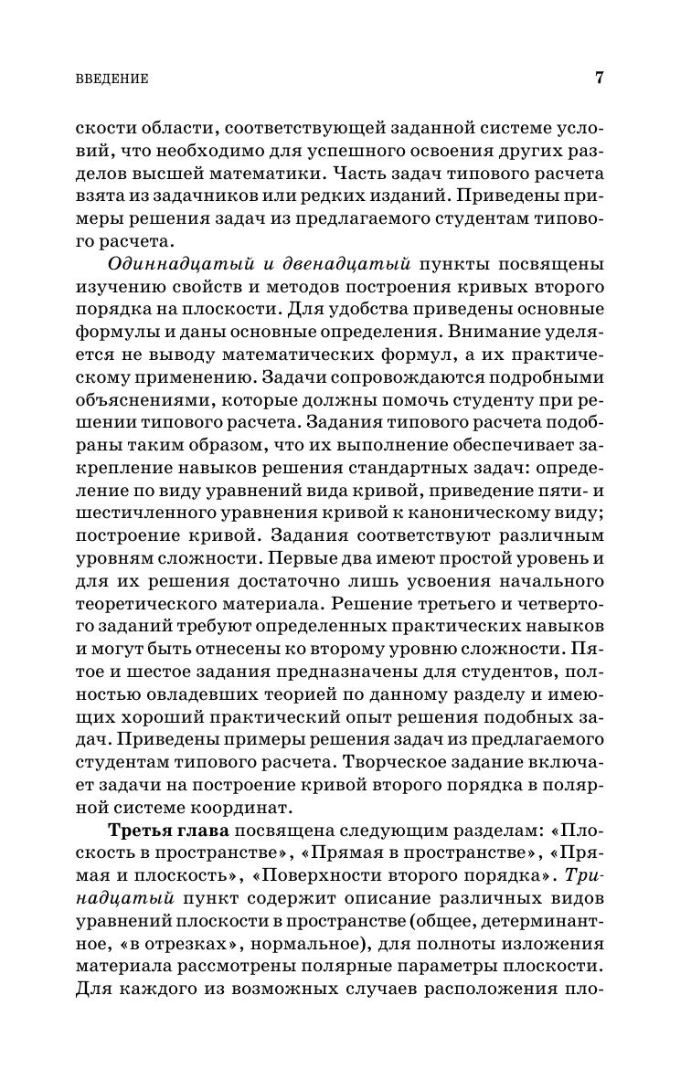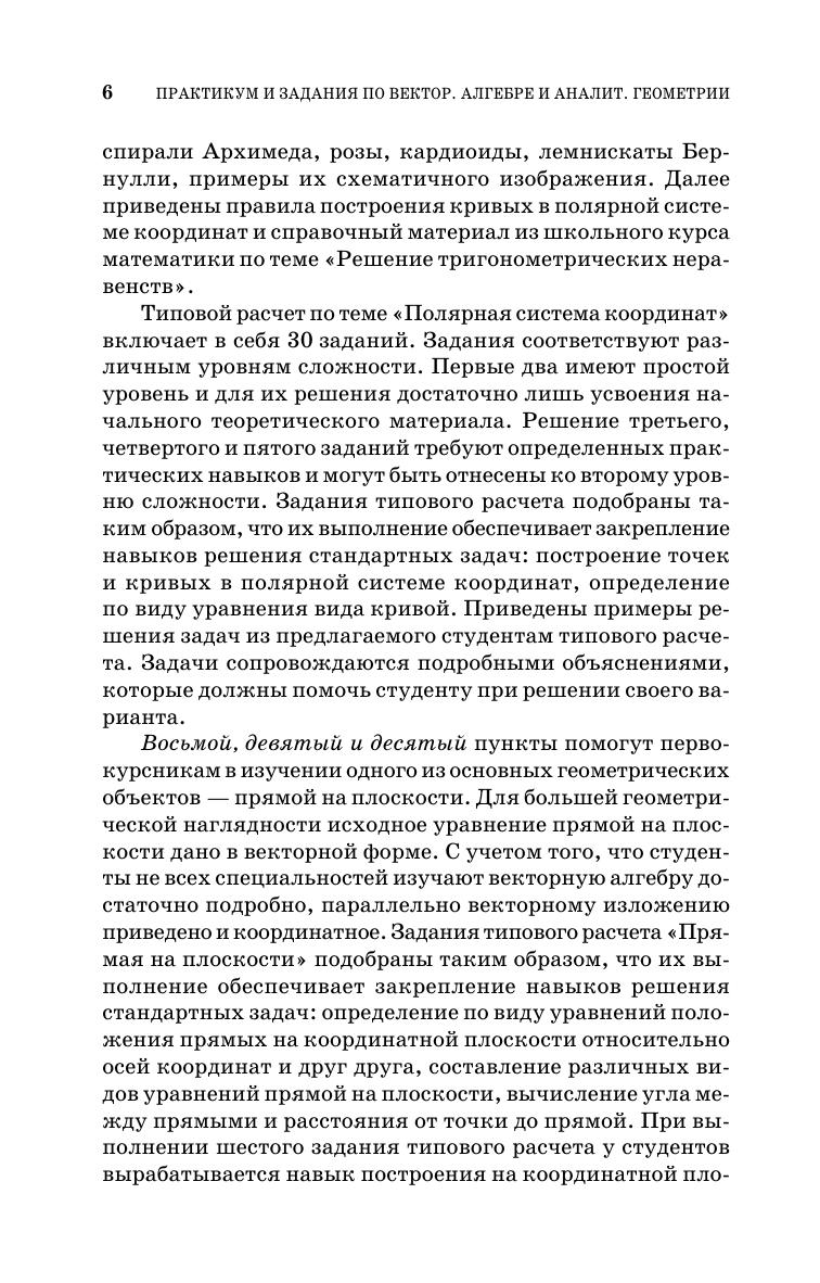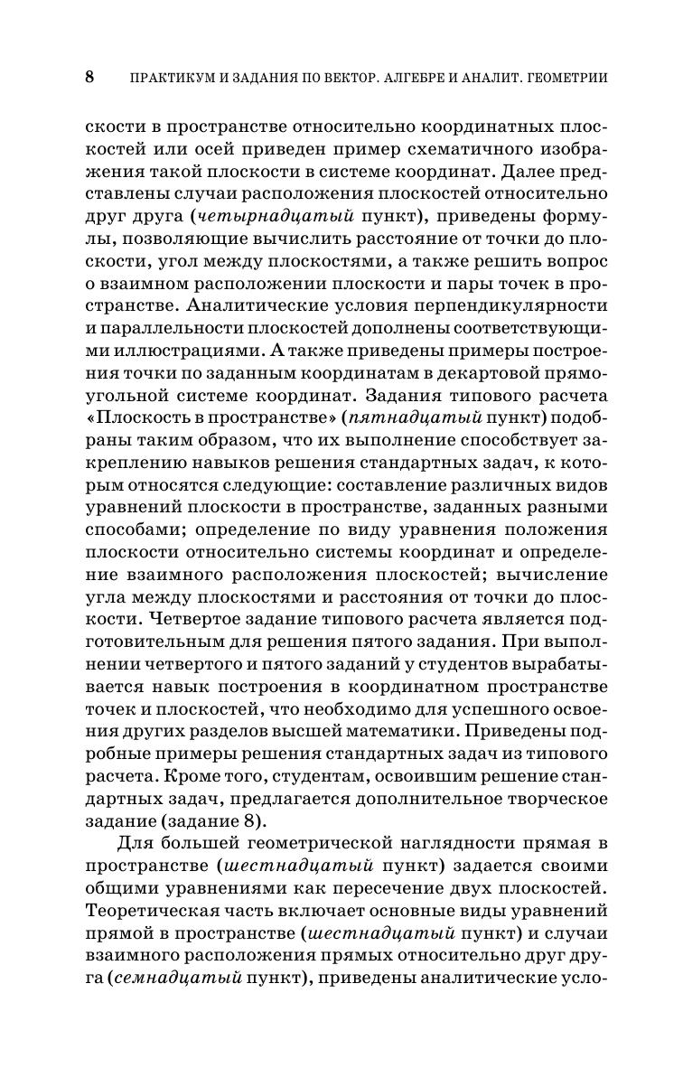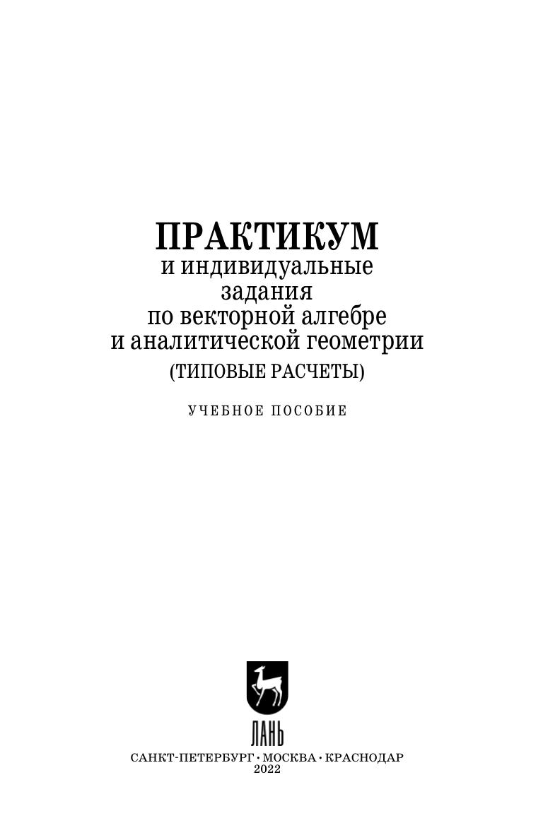 Настоящий практикум представляет собой сборник индивидуальных заданий (типовых расчетов) из курса высшей математики по темам «Векторная алгебра» и «Аналитическая геометрия». Излагаемые основные понятия сопровождаются большим количеством примеров с подробными решениями. Первая глава практикума содержит индивидуальные задания по теме «Скалярное, векторное и смешанное произведения». Вторая глава посвящена аналитической геометрии на плоскости и содержит индивидуальные задания по следующим темам: полярная система координат, прямая на плоскости, кривые второго порядка. Третья глава содержит необходимый материал по аналитической геометрии в пространстве: плоскость в пространстве, прямая в пространстве, прямая и плоскость в пространстве, поверхности второго порядка. Каждый типовой расчет включает в себя несколько заданий. Всего практикум содержит 8 типовых расчетов по 30 вариантов каждый. Соответствует современным требованиям Федерального государственного образовательного стандарта среднего профессионального образования и профессиональным квалификационным требованиям. Учебное пособие предназначено для студентов техникумов, обучающихся по направлениям подготовки «Строительство железных дорог, путь и путевое хозяйство», «Электроснабжение», «Организация перевозок и управление на транспорте», «Техническая эксплуатация подвижного состава железных дорог (вагоны)», «Техническая эксплуатация подвижного состава железных дорог (электроподвижной состав)», «Автоматика и телемеханика на транспорте (железнодорожном транспорте)».