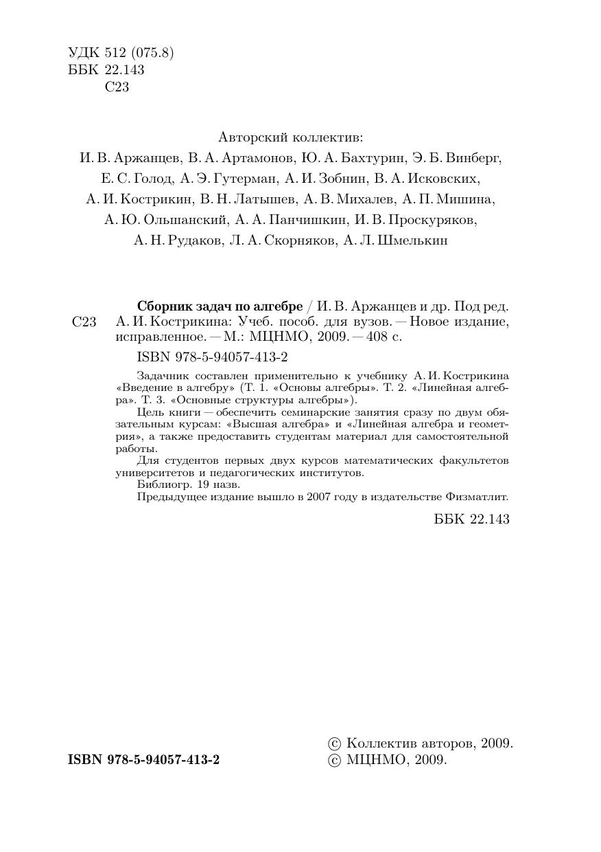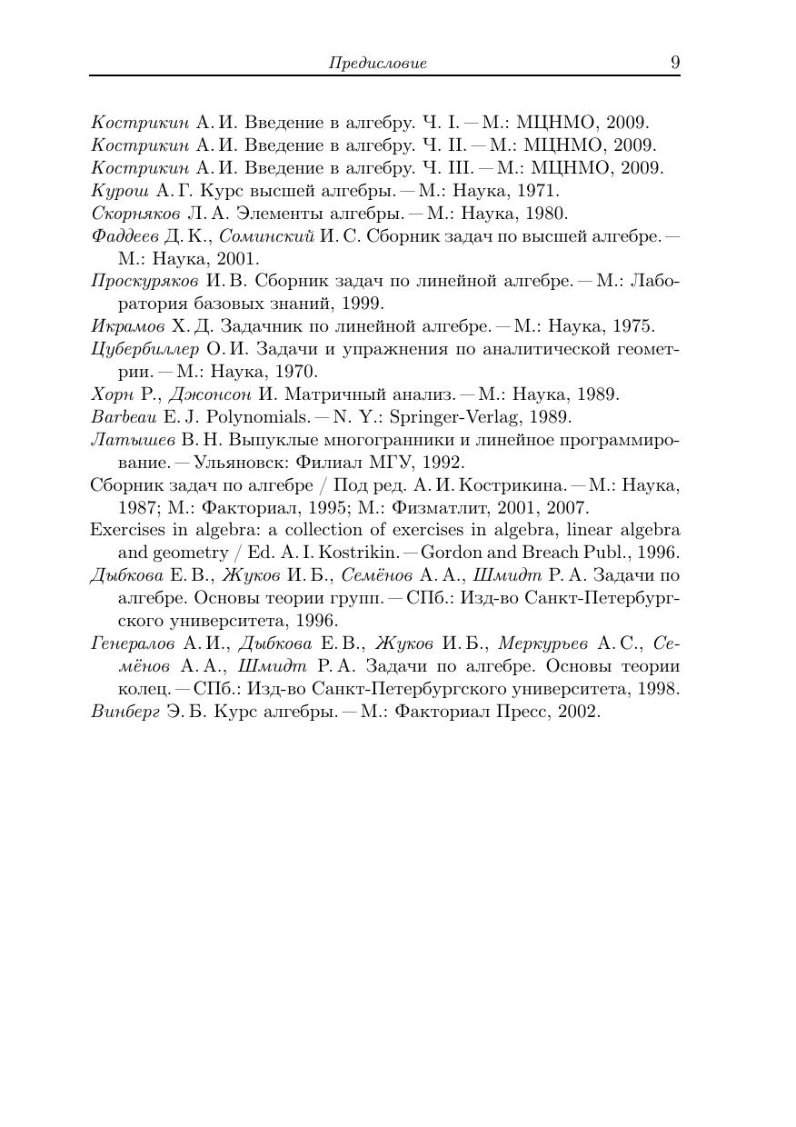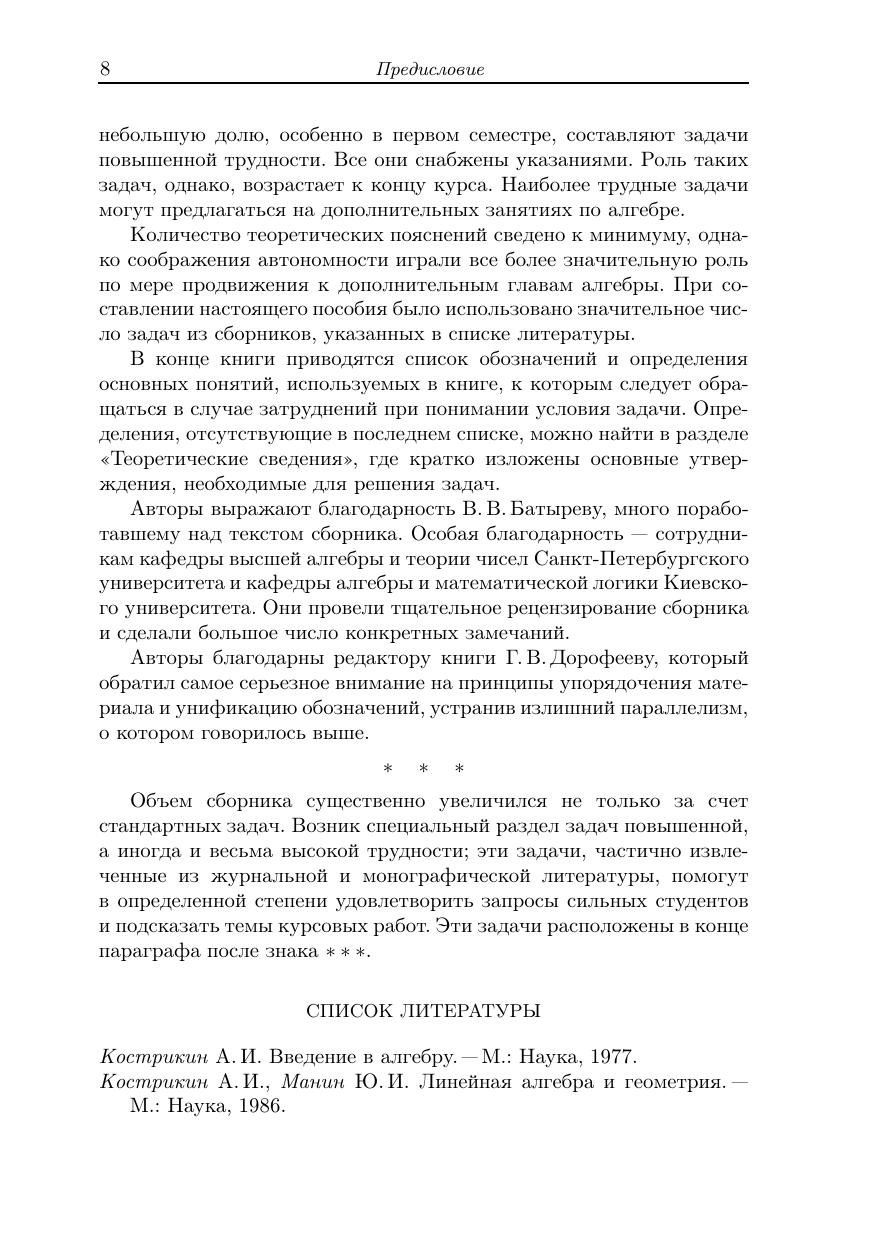 Задачник составлен применительно к учебнику А.И.Кострикина «Введение в алгебру» (Т. 1. «Основы алгебры». Т. 2. «Линейная алгебра». Т. 3. «Основные структуры алгебры»).Цель книги — обеспечить семинарские занятия сразу по двум обязательным курсам: «Высшая алгебра» и «Линейная алгебра и геометрия», а также предоставить студентам материал для самостоятельной работы.Для студентов первых двух курсов математических факультетов университетов и педагогических институтов.Библиогр. 19 назв. Предыдущее издание вышло в 2007 году в издательстве Физматлит.