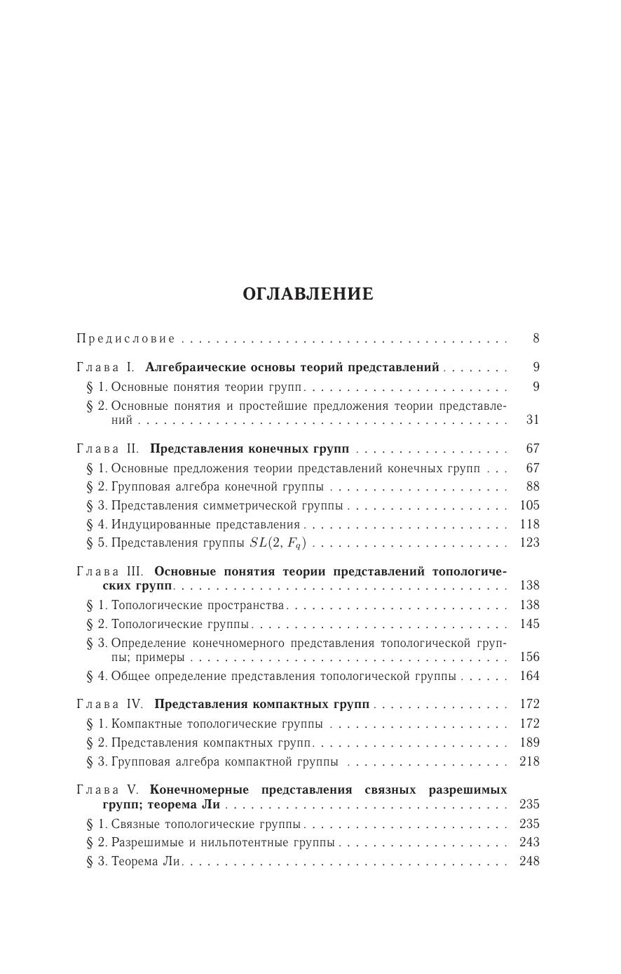 В книге в доступной форме, но без снижения математической строгости, излагаются основы теории конечномерных представлений групп, в частности, представлений конечных групп, компактных групп и классических групп, а также излагаются основные понятия и предложения теории групп Ли и их конечномерных представлений. Для студентов старших курсов и аспирантов математических, физических и химических факультетов, научных работников: математиков и физиков-теоретиков.