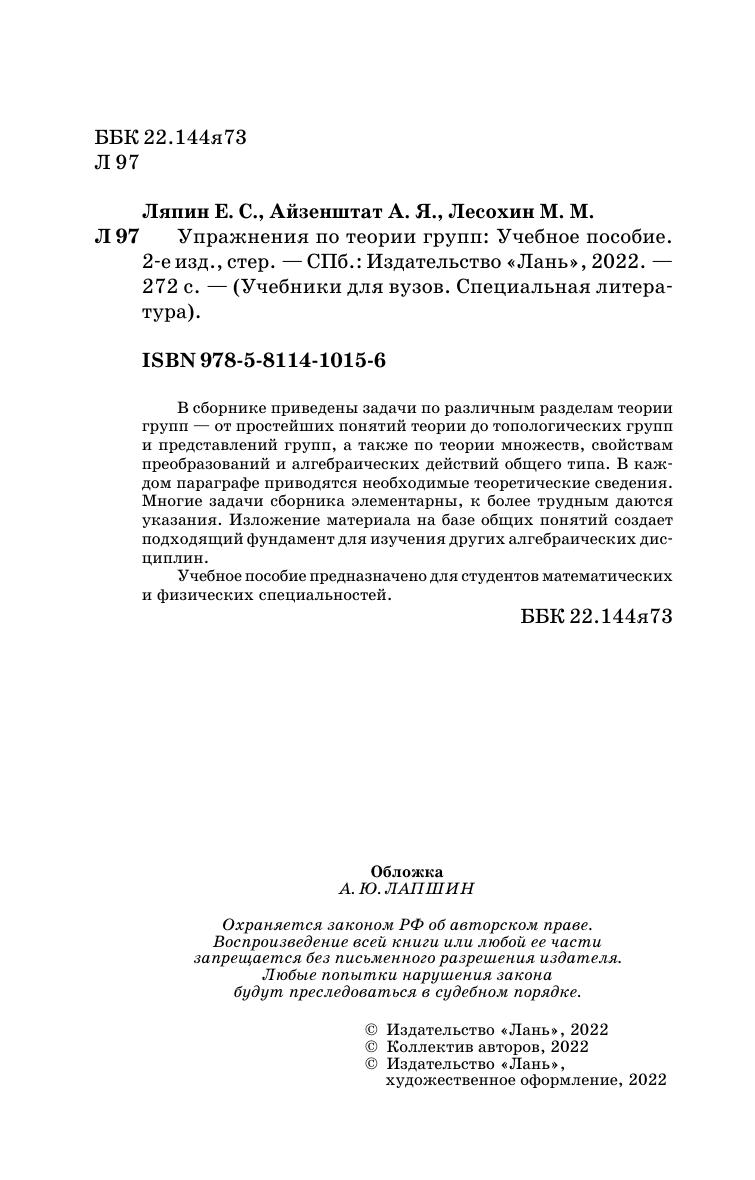 ISBN 978-5-8114-1015-6; 2022 г.