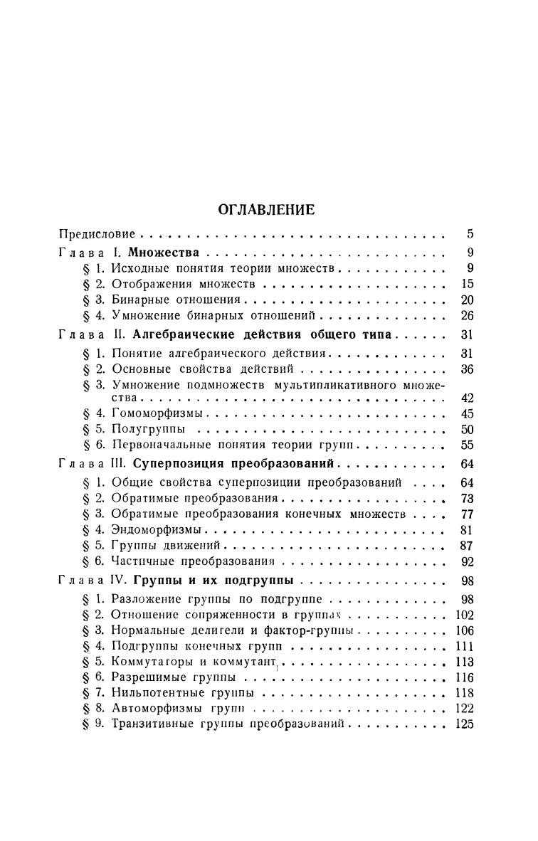 В сборнике приведены задачи по различным разделам теории групп — от простейших понятий теории до топологических групп и представлений групп, а также по теории множеств, свойствам преобразований и алгебраических действий общего типа. В каждом параграфе приводятся необходимые теоретические сведения. Многие задачи сборника элементарны, к более трудным даются указания. Изложение материала на базе общих понятий создает подходящий фундамент для изучения других алгебраических дисциплин. Учебное пособие предназначено для студентов математических и физических специальностей.