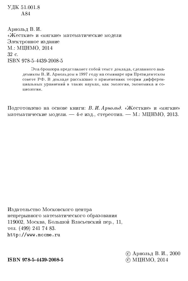 Эта брошюра представляет собой текст доклада, сделанного академиком В.И.Арнольдом в 1997 году на семинаре при Президентском совете РФ. В докладе рассказано о применениях теории дифферециальных уравнений в таких науках, как экология, экономика и социология.