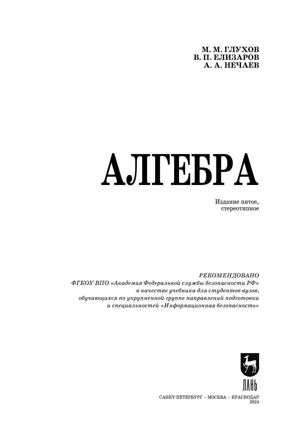 Авторы: Глухов М. М., Елизаров В. П., Нечаев А. А.