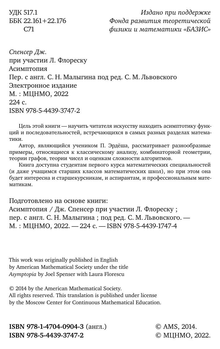 Цель этой книги — научить читателя искусству находить асимптотику функций и последовательностей, встречающихся в самых разных разделах математики. Автор, являющийся учеником П. Эрдёша, рассматривает разнообразные примеры, относящиеся к классическому анализу, комбинаторной геометрии, теории графов, теории чисел и оценкам сложности алгоритмов. Книга доступна студентам первого курса математических специальностей (и даже учащимся старших классов математических школ), но при этом она будет интересна и старшекурсникам, и аспирантам, и профессиональным математикам.