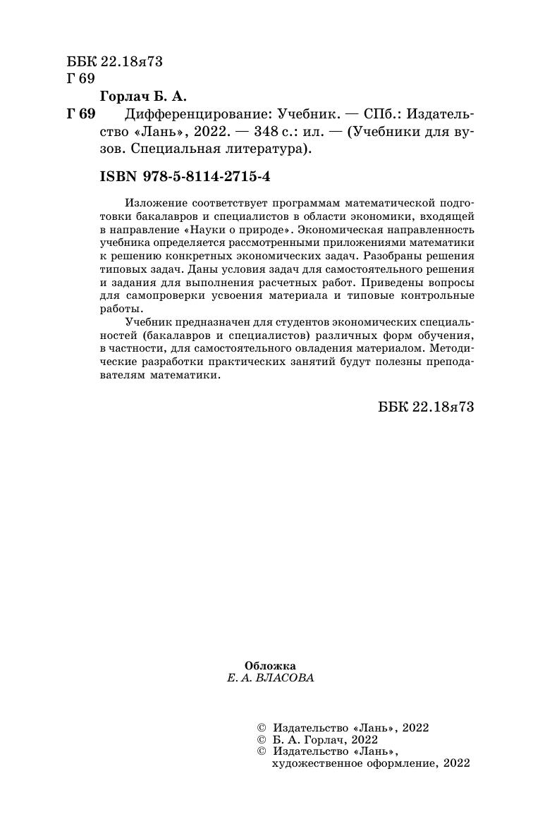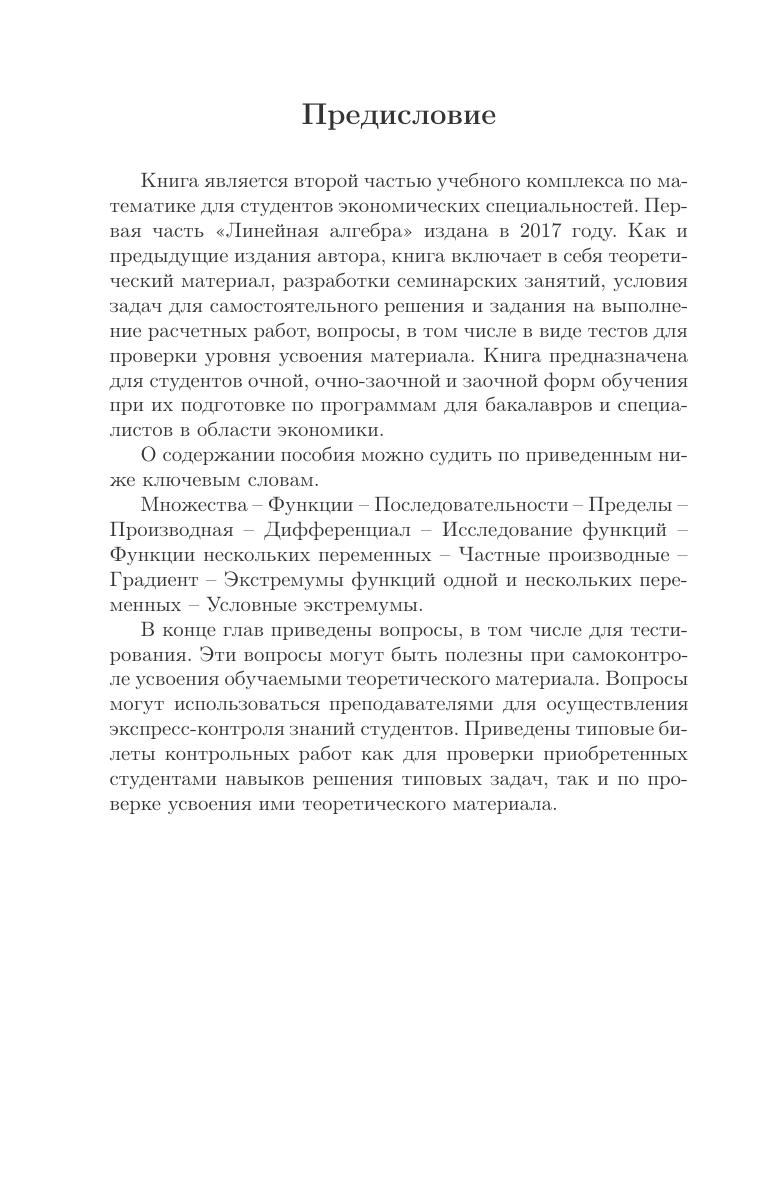Изложение соответствует программам математической подготовки бакалавров и специалистов в области экономики, входящей в направление «Науки о природе». Экономическая направленность учебника определяется рассмотренными приложениями математики к решению конкретных экономических задач. Разобраны решения типовых задач. Даны условия задач для самостоятельного решения и задания для выполнения расчетных работ. Приведены вопросы для самопроверки усвоения материала и типовые контрольные работы. Учебник предназначен для студентов экономических специальностей (бакалавров и специалистов) различных форм обучения, в частности для самостоятельного овладения материалом. Методические разработки практических занятий будут полезны преподавателям математики.
