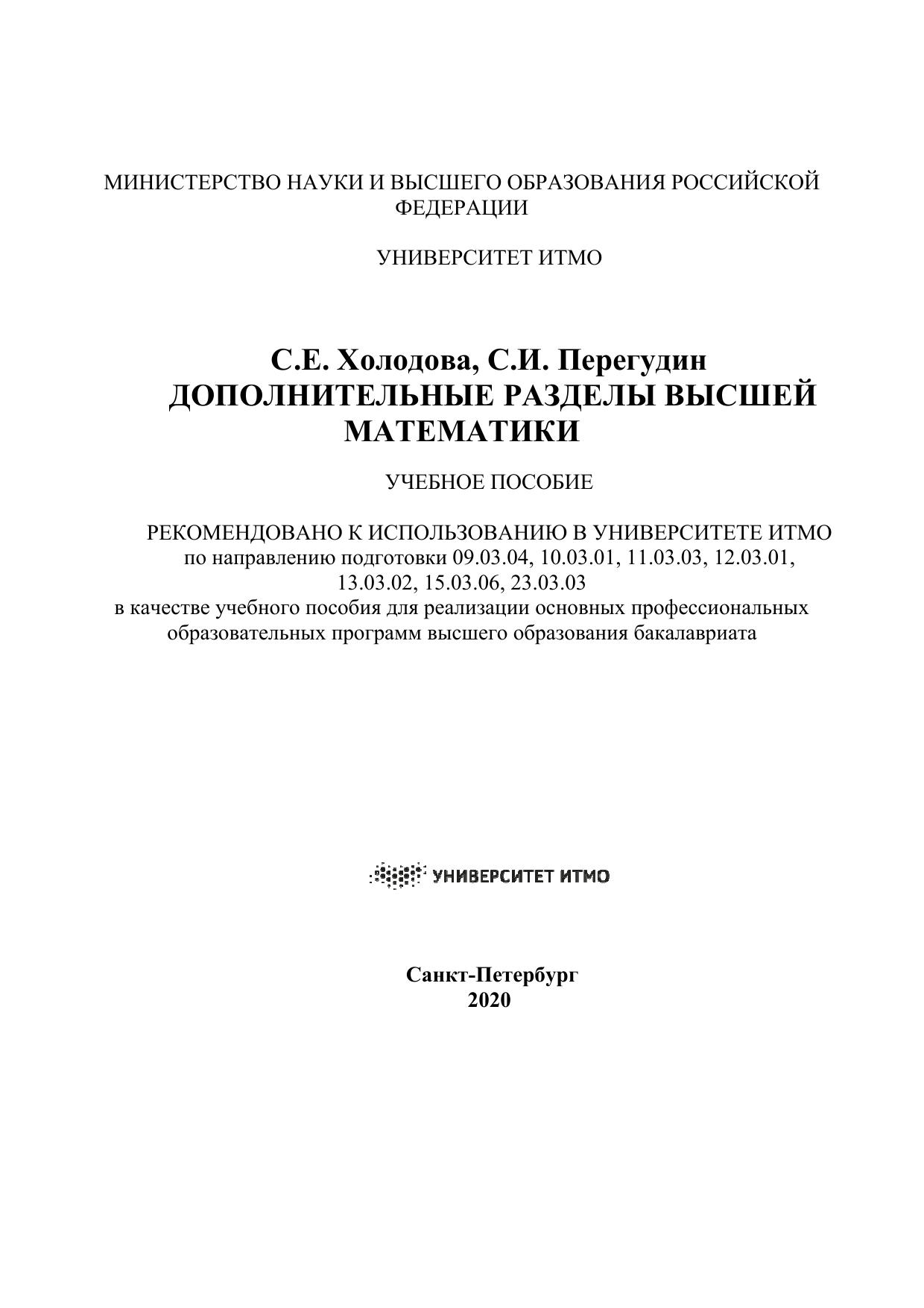 Дополнительные разделы высшей математики