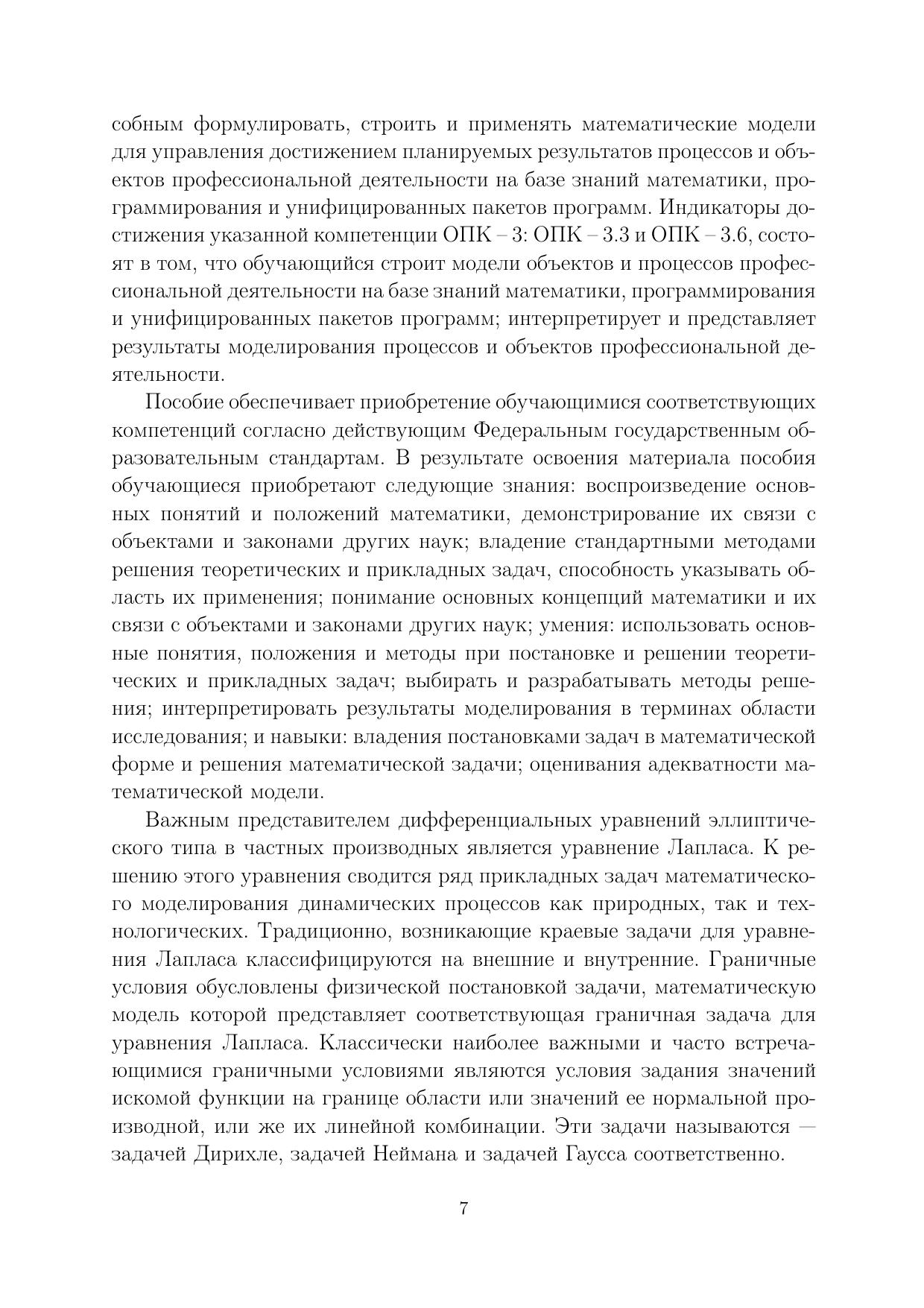 Рассматриваются основные методы решения краевых задач для дифференциальных уравнений в частных производных эллиптического типа – уравнения Лапласа и Пуассона в областях с различной геометрической топологией. Приводятся необходимые теоретические сведения, излагаются примеры решения задач и предлагаются задачи для самостоятельного решения. Предлагаемое пособие предназначено для студентов второго курса академического бакалавриата.