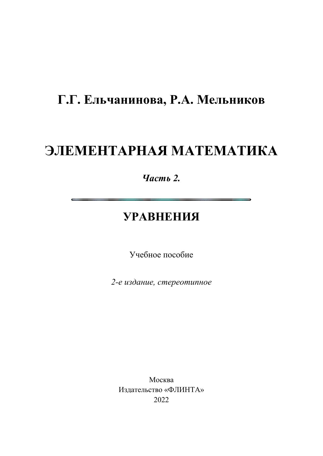 Элементарная математика. Часть 2. Уравнения