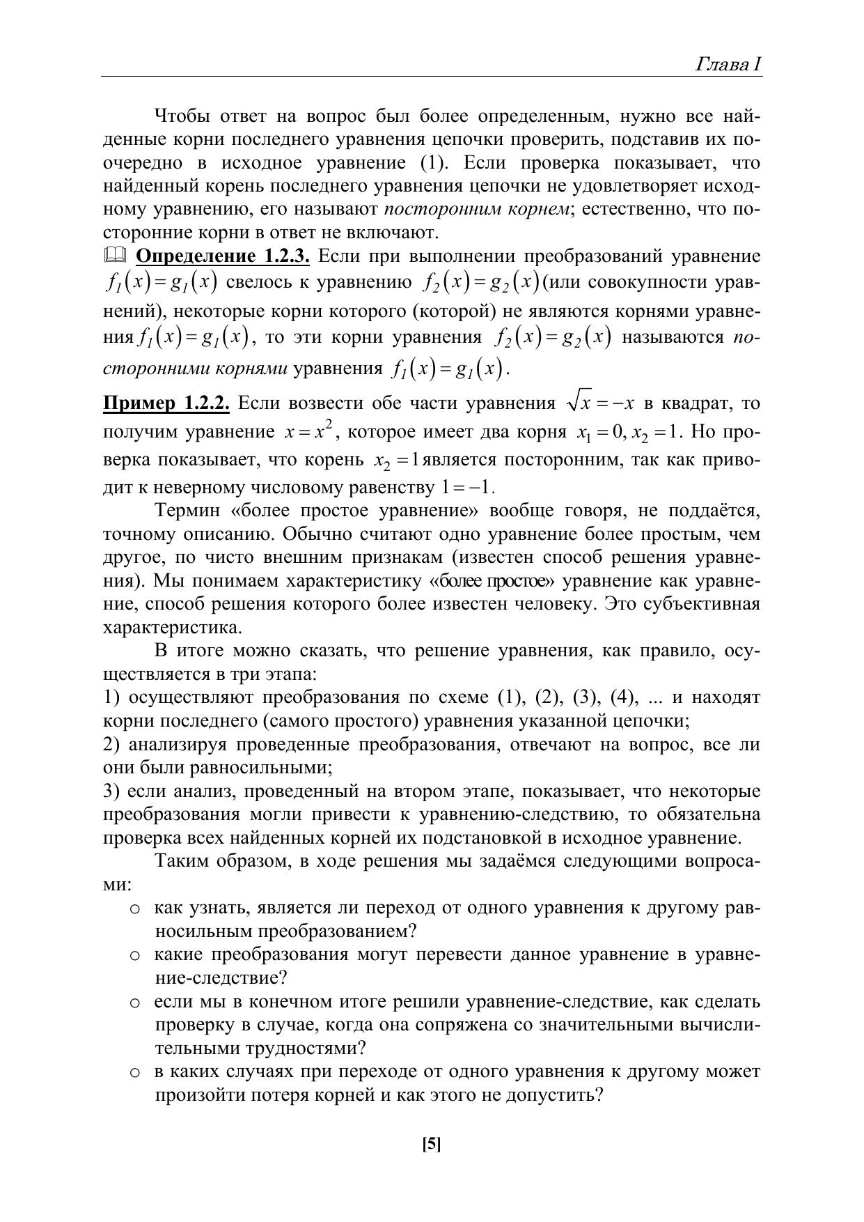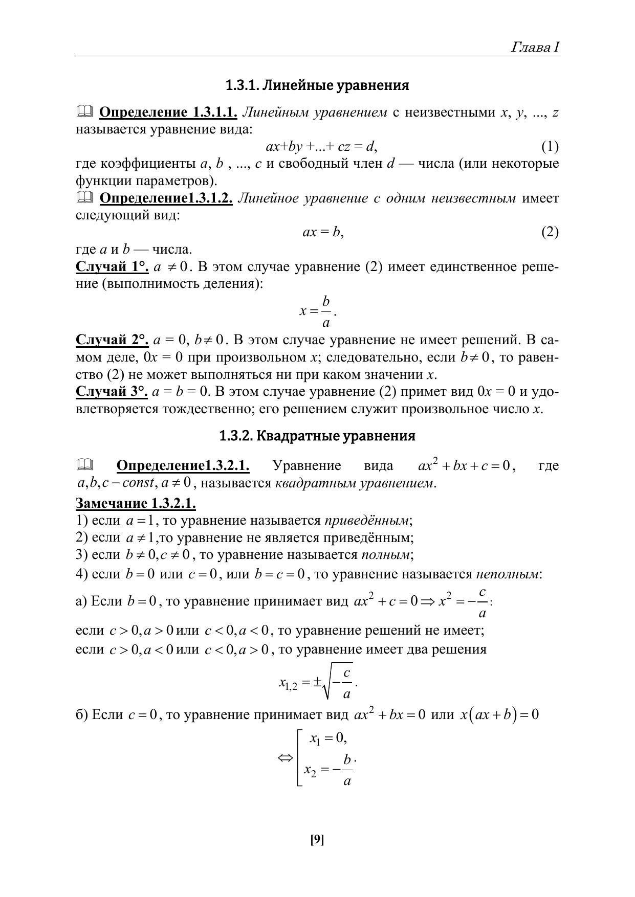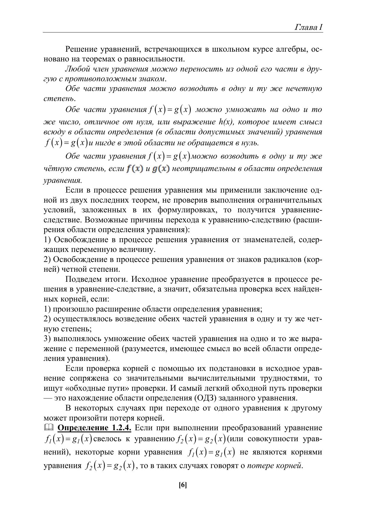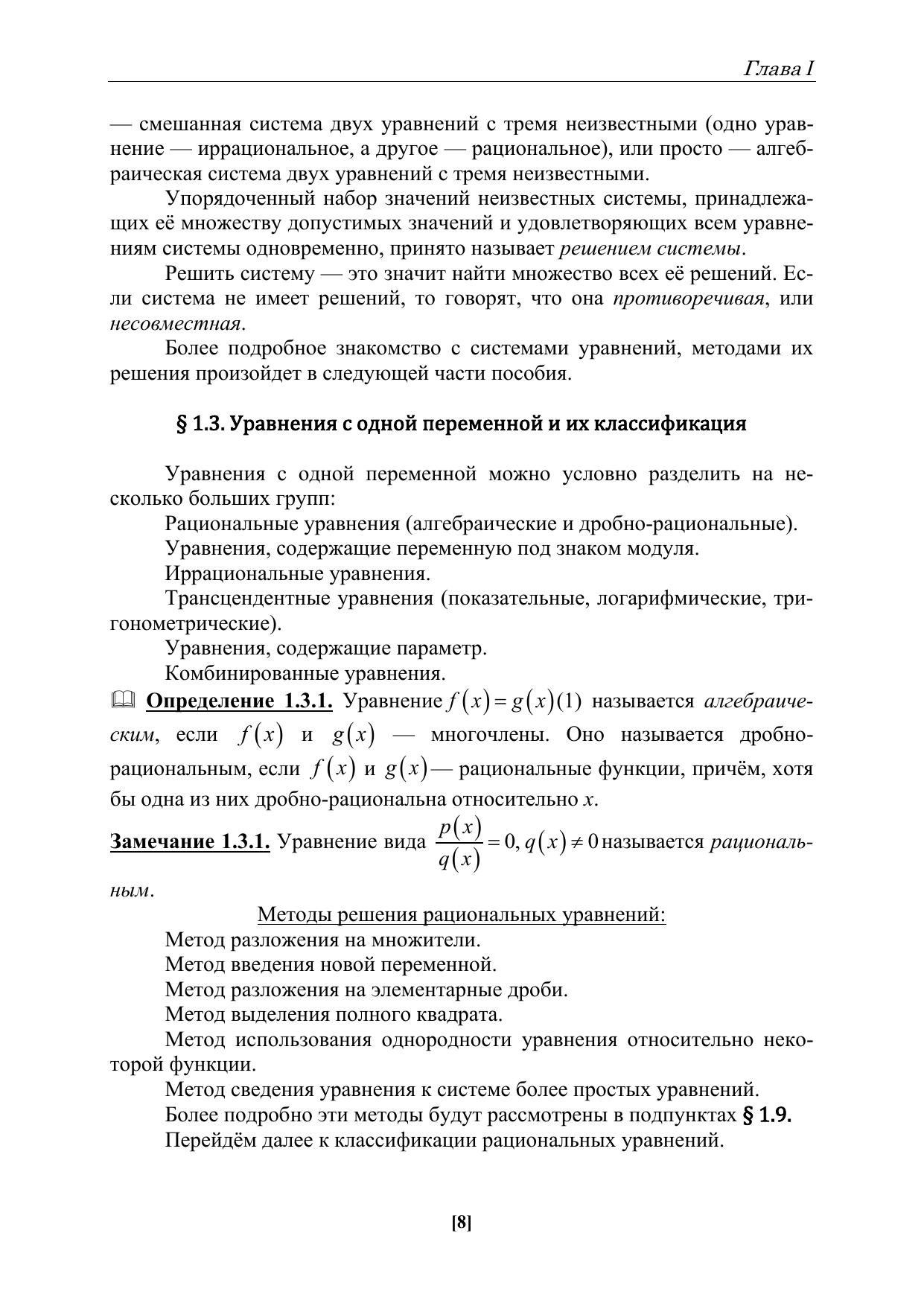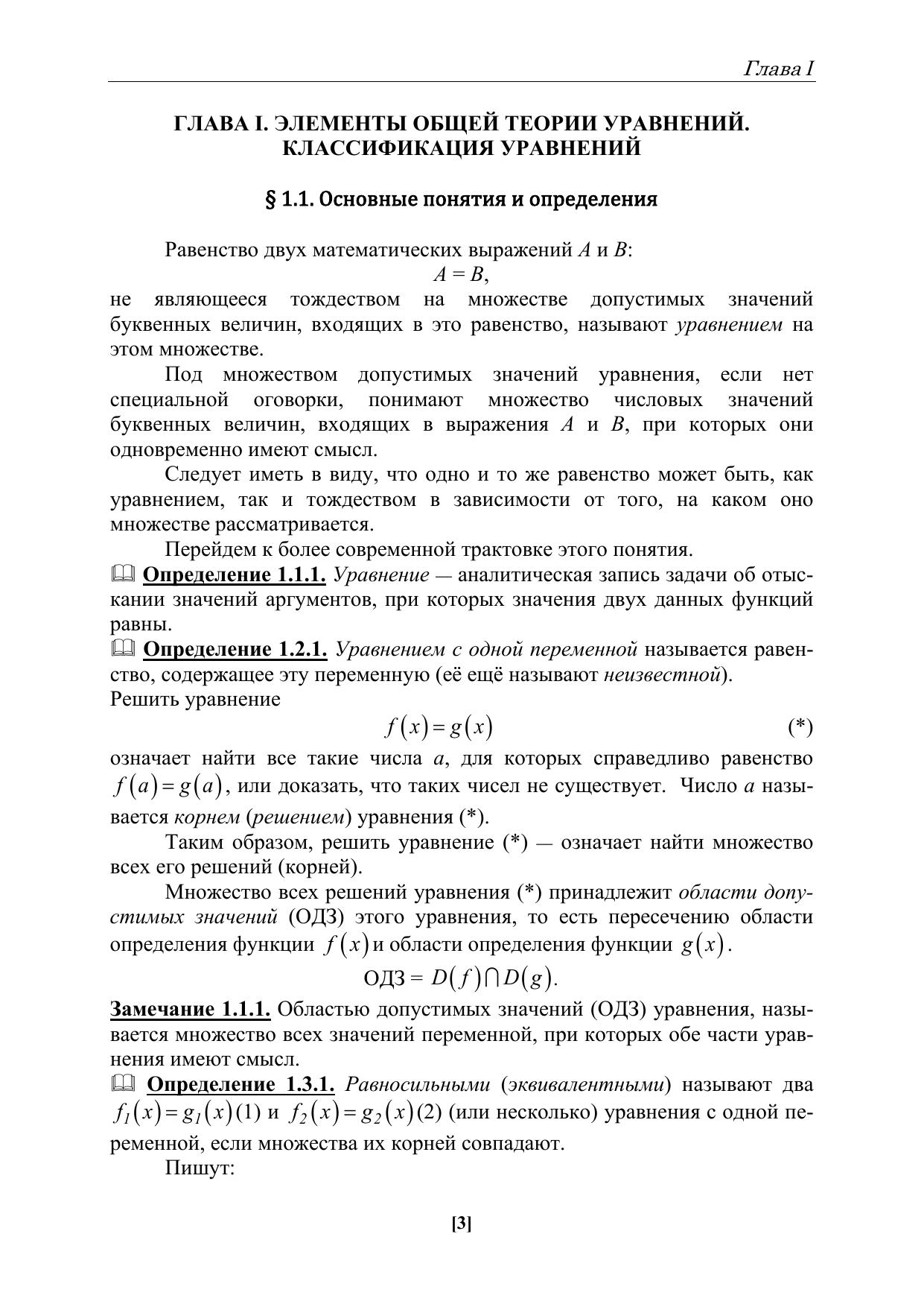 Пособие ориентировано, в первую очередь, на студентов физико-математического отделения института математики, естествознания и техники, но может быть полезно обучающимся других направлений подготовки, а также учителям математики при изучении и изложении материала, связанного с уравнениями.