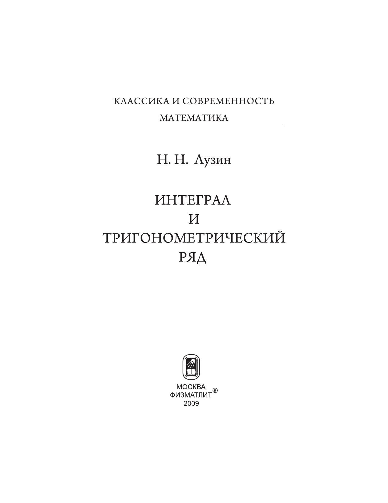 Интеграл и тригонометрический ряд