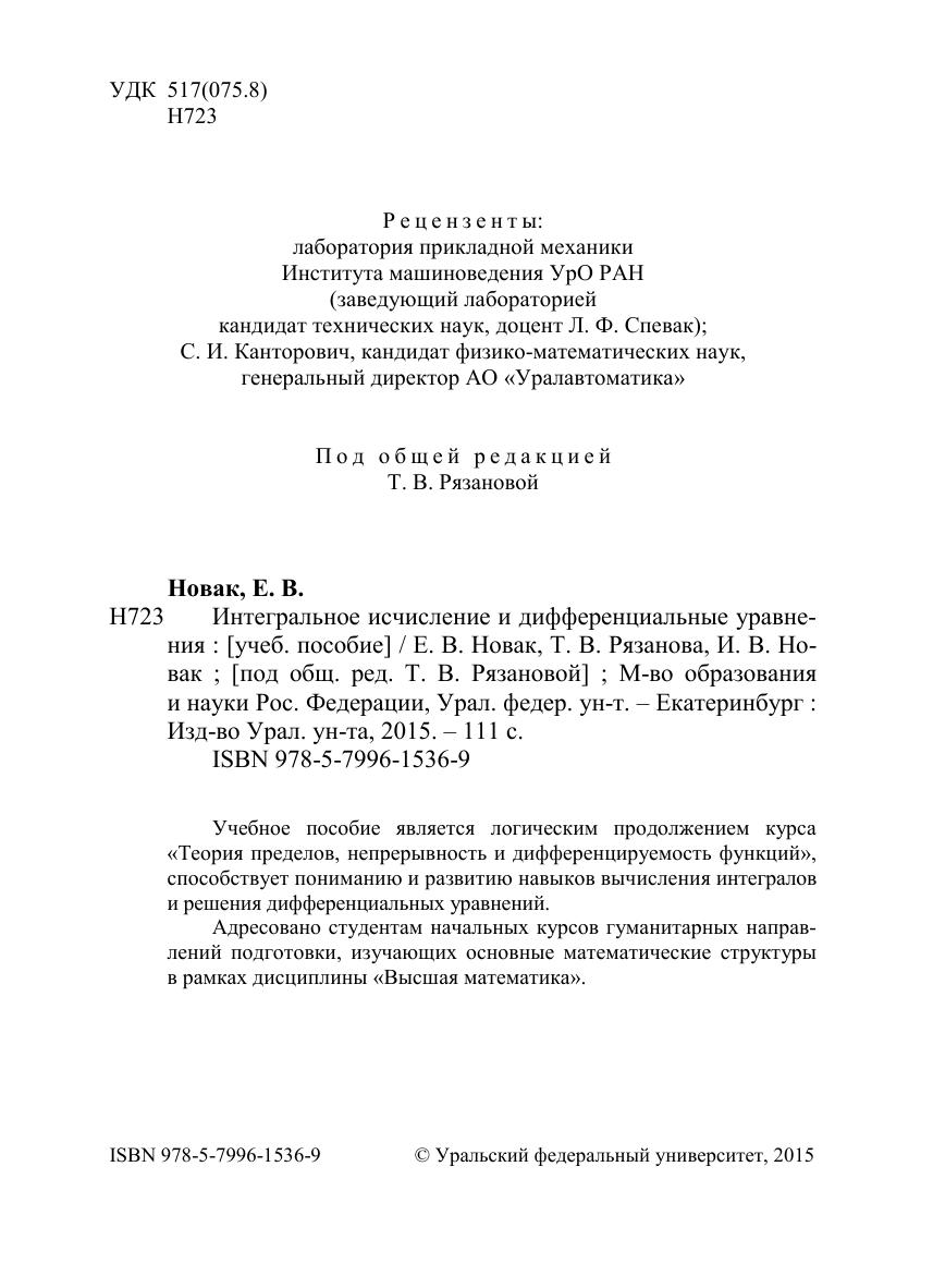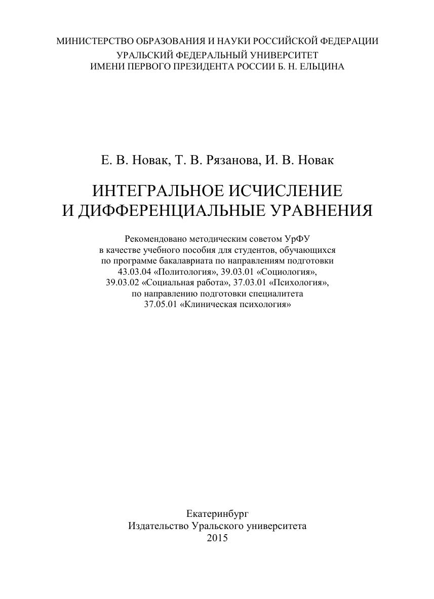 Интегральное исчисление и дифференциальные уравнения: учеб. пособие