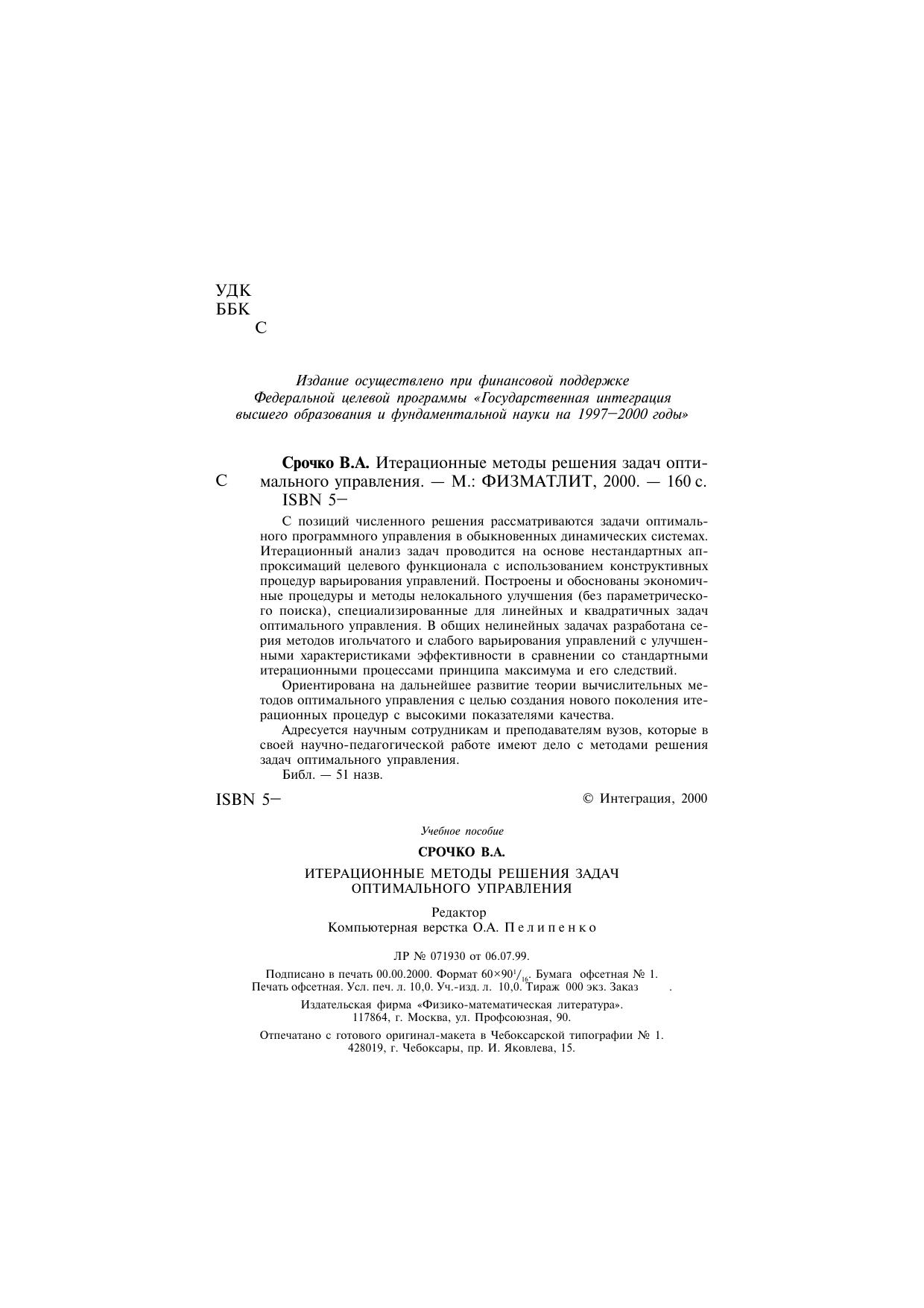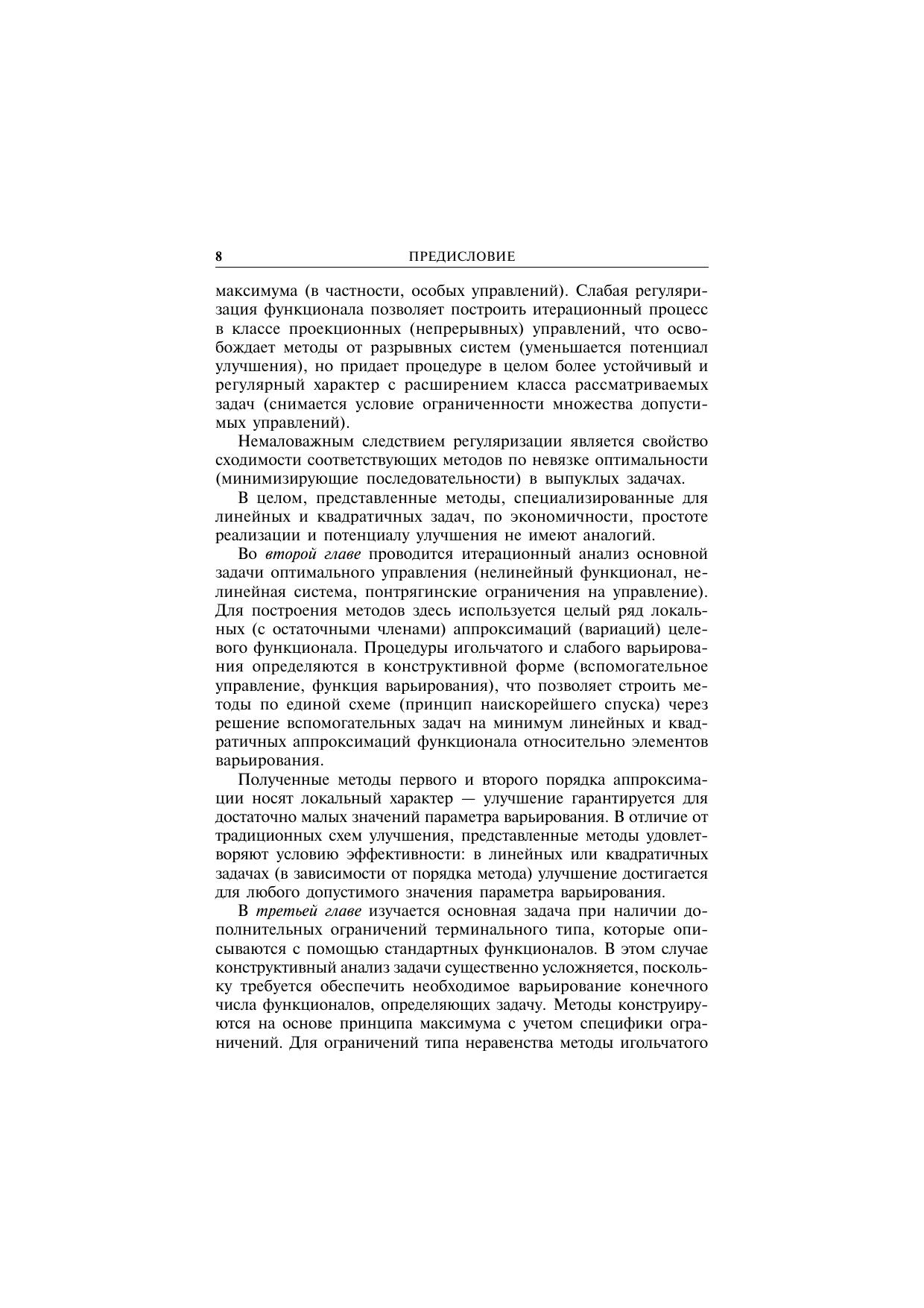 С позиций численного решения рассматриваются задачи оптимального программного управления в обыкновенных динамических системах. Итерационный анализ проводится на основе нестандартных аппроксимаций целевого функционала с использованием конструктивных процедур варьирования управлений. Построены и обоснованы экономичные процедуры и методы нелокального улучшения (без параметрического поиска), специализированные для линейных и квадратичных задач оптимального управления. В общих нелинейных задачах разработана серия методов игольчатого и слабого варьирования управлений с улучшенными характеристиками эффективности в сравнении со стандартными итерационными процессами принципа максимума и его следствий. Книга ориентирована на дальнейшее развитие теории вычислительных методов оптимального управления с целью создания нового поколения итерационных процедур с высокими показателями качества. Адресуется научным сотрудникам и преподавателям вузов, которые в своей научно-педагогической работе имеют дело с методами решения задач оптимального управления. Может быть использована как учебное пособие для студентов и аспирантов соответствующих специальностей