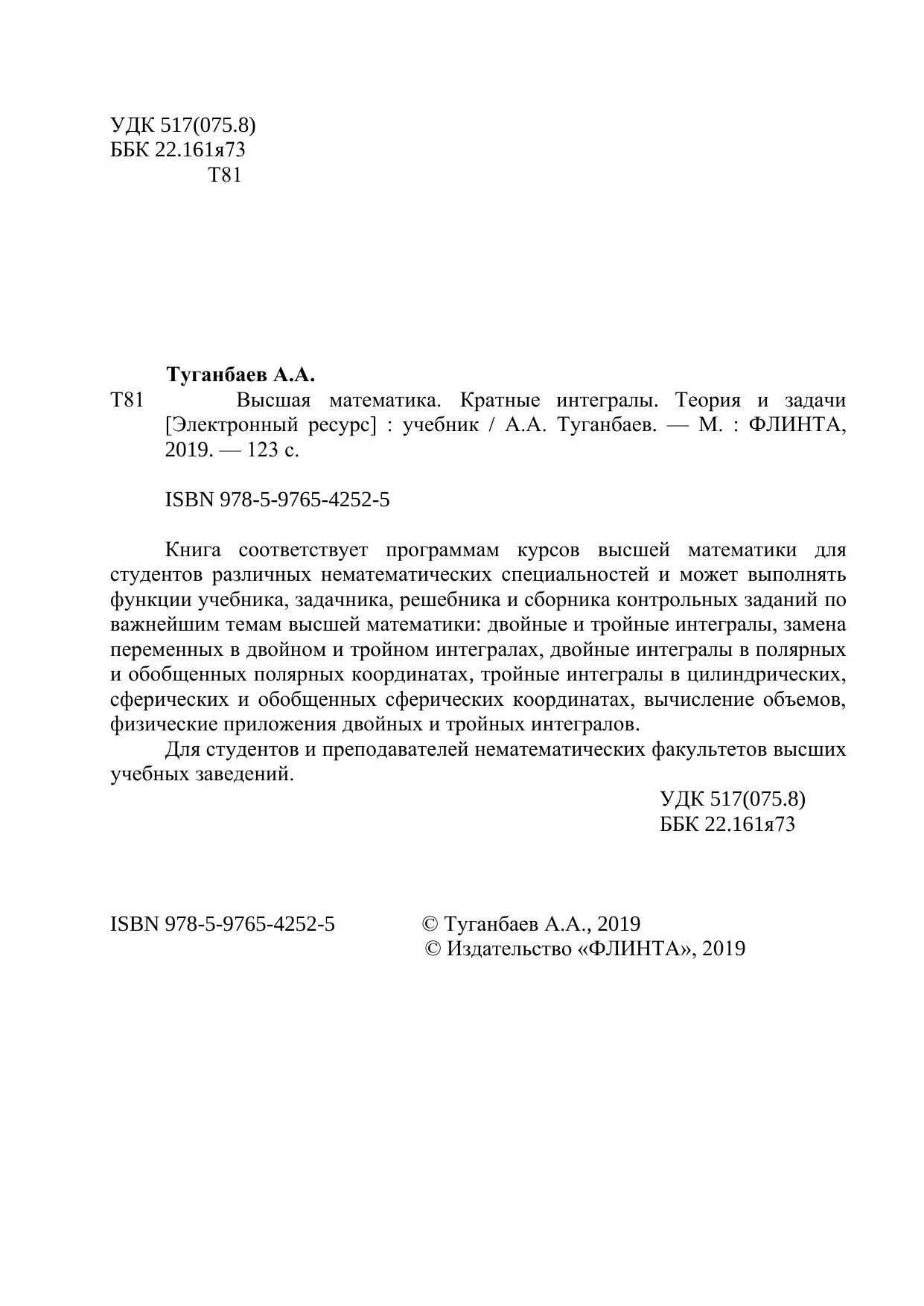 сферических и обобщенных сферических координатах, вычисление объемов, физические приложения двойных и тройных интегралов.