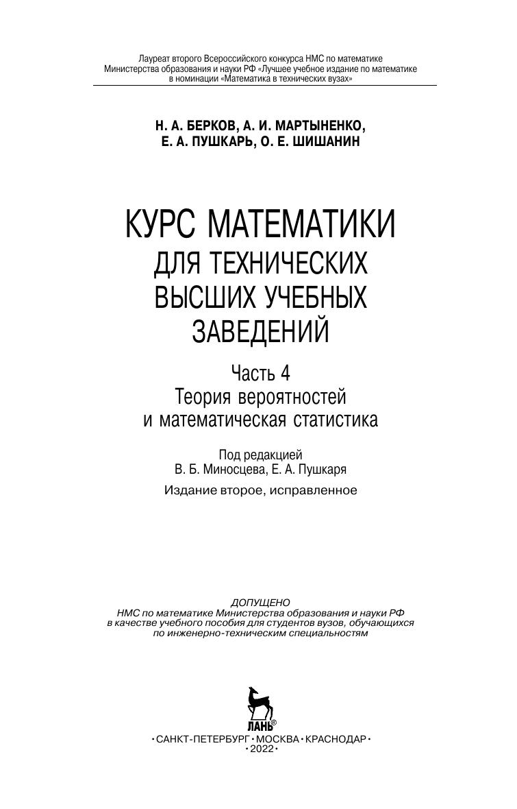Курс математики для технических высших учебных заведений. Часть 4. Теория вероятностей и математическая статистика