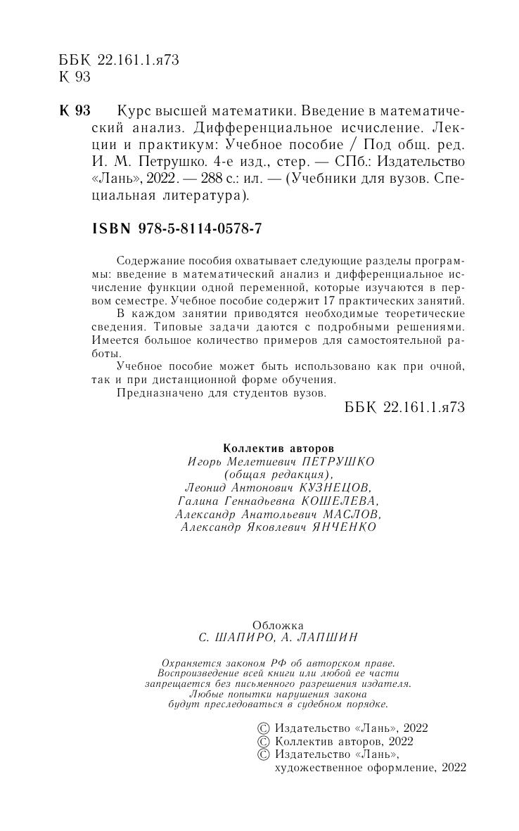Курс высшей математики. Введение в математический анализ. Дифференциальное исчисление. Лекции и практикум