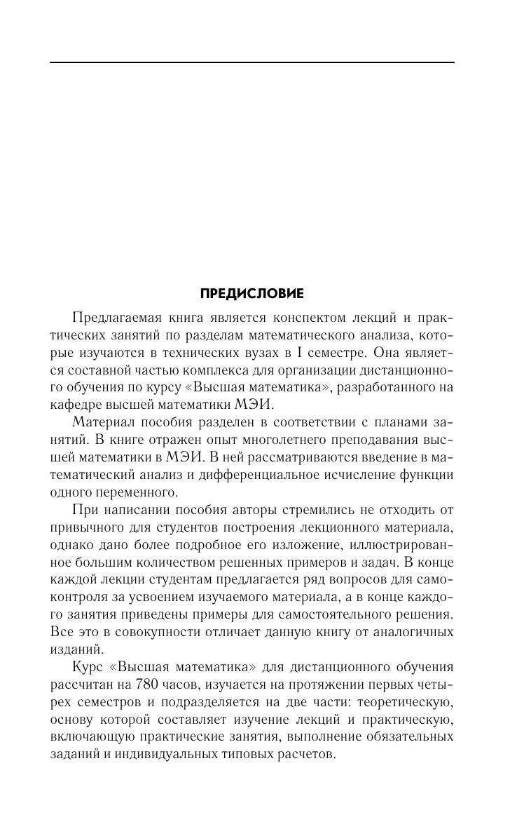 Содержание пособия охватывает следующие разделы программы: введение в математический анализ и дифференциальное исчисление функции одной переменной, которые изучаются в первом семестре. Учебное пособие содержит 17 практических занятий. В каждом занятии приводятся необходимые теоретические сведения. Типовые задачи даются с подробными решениями. Имеется большое количество примеров для самостоятельной работы. Учебное пособие может быть использовано как при очной, так и при дистанционной форме обучения. Предназначено для студентов вузов.