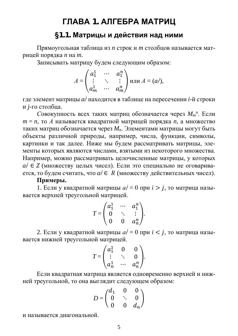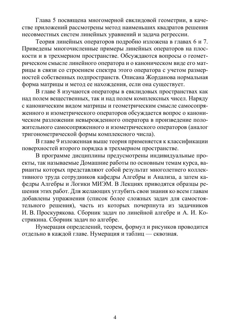 Перед вами учебное пособие по линейной алгебре, который возник в результате обработки, расширения и углубления годового курса, читаемого автором в течение ряда лет для студентов МИЭМ НИУ ВШЭ, обучающихся по программе Компьютерная безопасность. Изложение материала базируется, во-первых, на традиции преподавания линейной алгебре на кафедре алгебры и анализа (а в последствии на кафедре Алгебры и Логики) МИЭМ. Речь идет о сочетании математической строгости изложения теории с алгоритмизацией процесса решения различных алгебраических задач, что позволяет большинству студентов успешно справляться с практическими заданиями. Во-вторых, в курсе последовательно проводится взгляд на линейную алгебру, как на многомерную геометрию. Это позволяет использовать геометрическую интуицию и трехмерные геометрические модели для демонстрации наглядного смысла абстрактных алгебраических понятий и доказательств различных теорем. В курсе представлены решения многочисленных примеров, которые традиционно разбираются на семинарах. Может быть использовано в качестве учебного пособия для студентов средних профессиональных учреждений. Соответствует современным требованиям Федерального государственного образовательного стандарта среднего профессионального образования и профессиональным квалификационным требованиям.