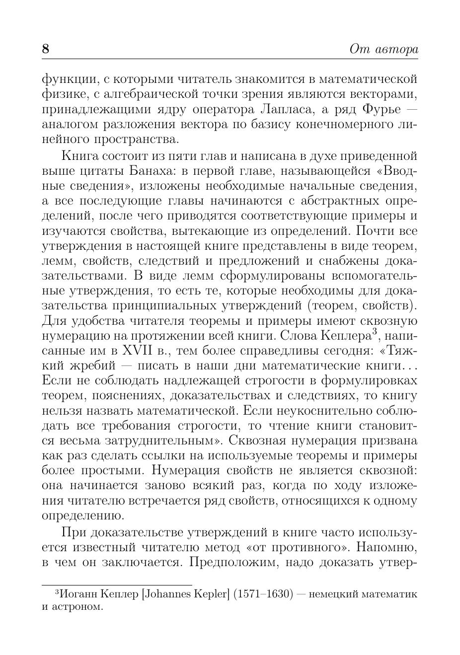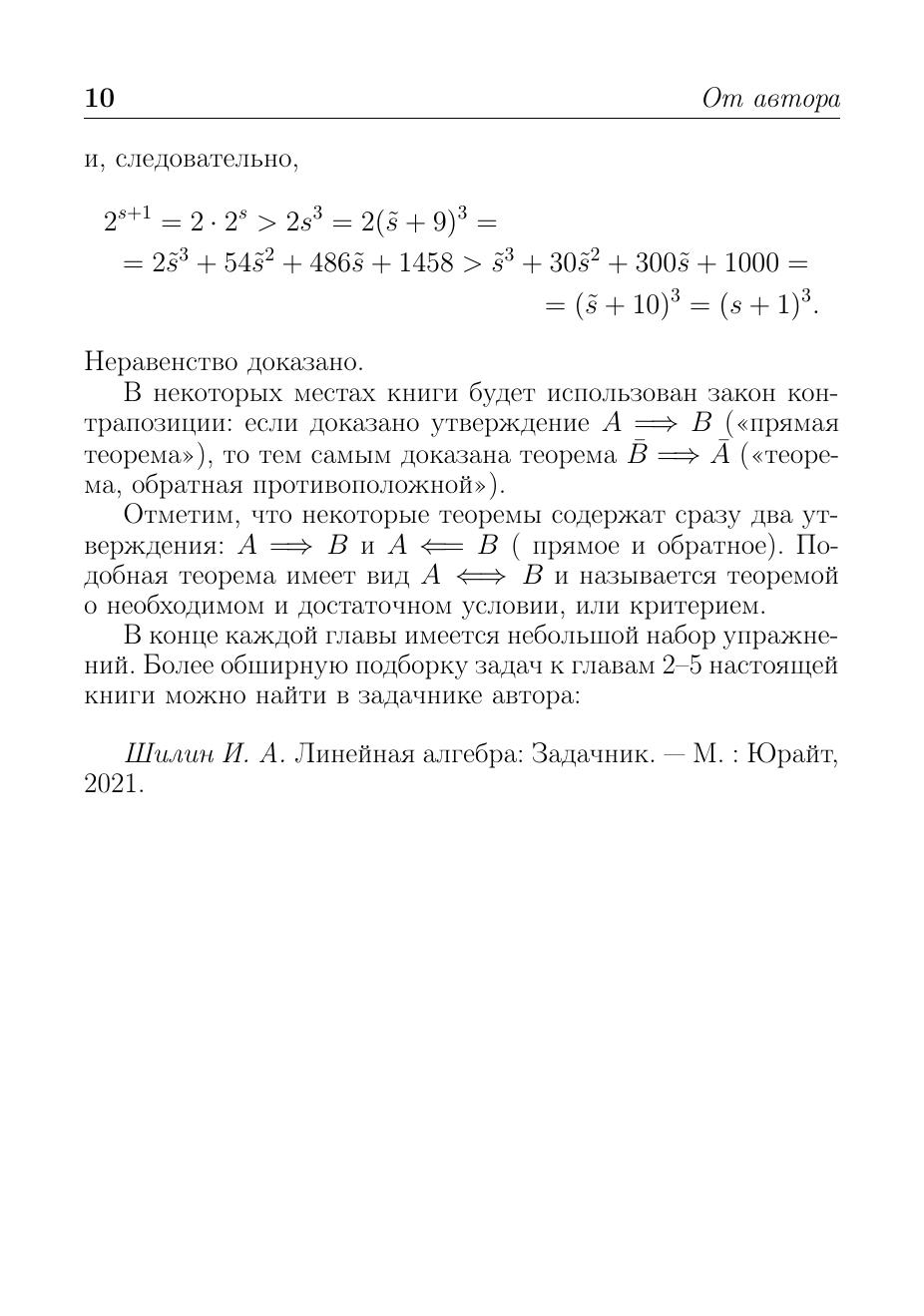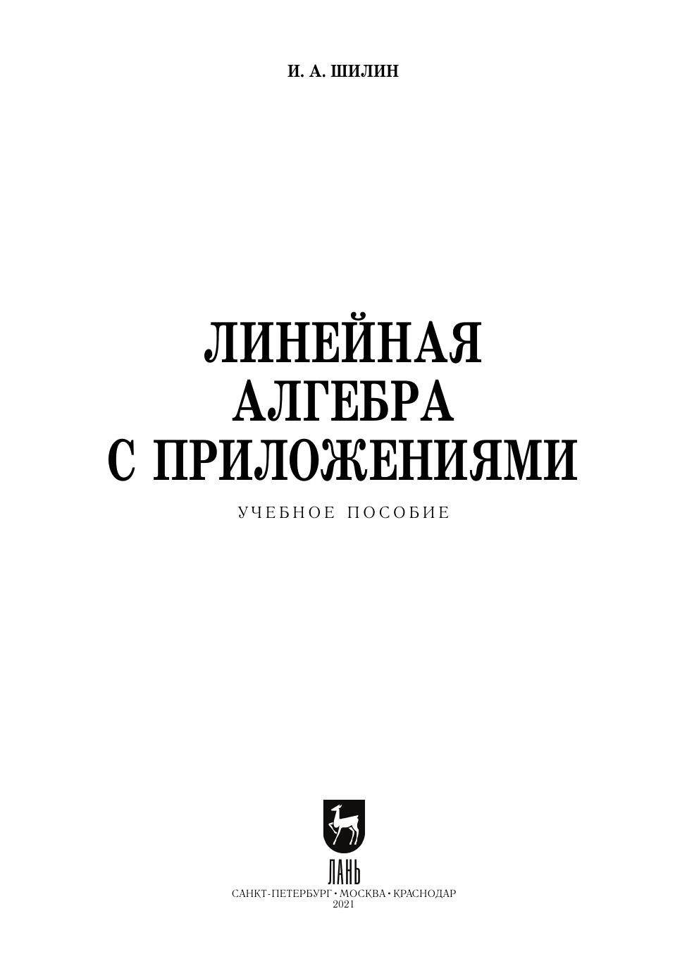 В книге рассматриваются основные понятия, идеи и методы линейной алгебры. Многочисленные примеры, связанные как с конечномерными и конечными линейными пространствами, так и бесконечномерными, демонстрируют их применение в других разделах математики: математическом анализе, теории обыкновенных дифференциальных уравнений, теории рядов и т. д. Часть примеров относится к линейным пространствам над конечными полями. Материал книги может использоваться в процессе обучения целиком или частично.
