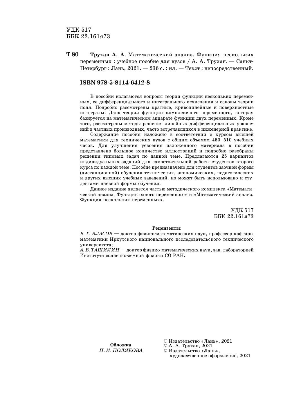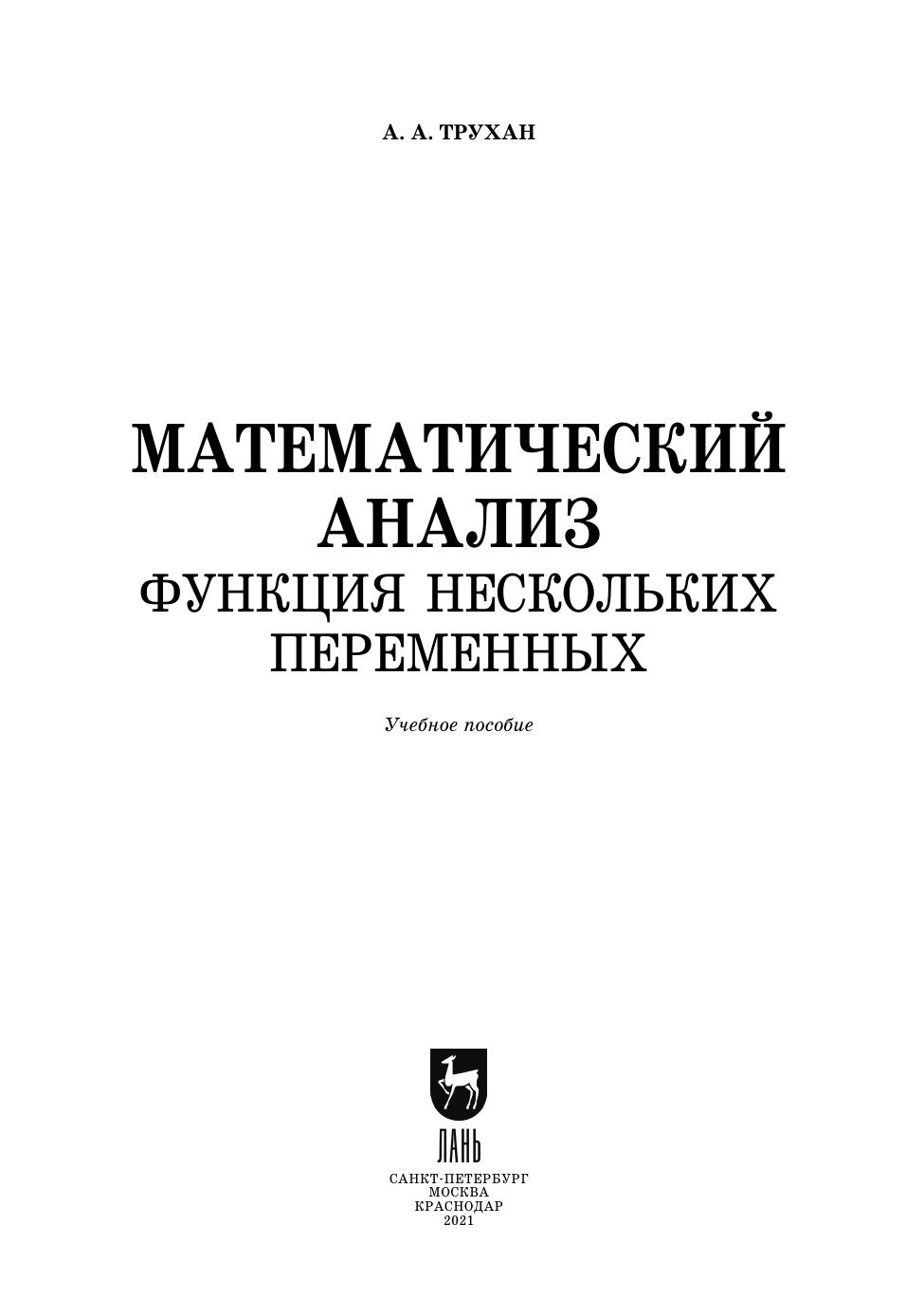 Данное издание является частью методического комплекта «Математический анализ. Функция одного переменного» и «Математический анализ. Функция нескольких переменных».