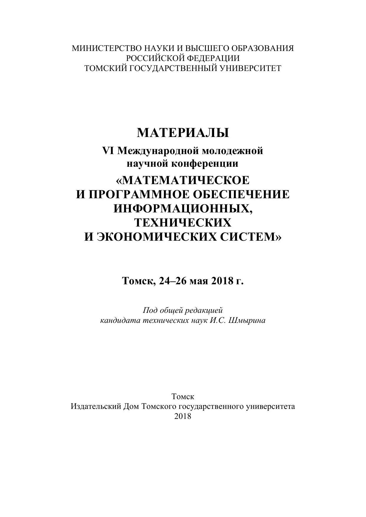 Математическое и программное обеспечение информационных, технических и экономических систем: материалы VI Международной молодежной научной конференции. Томск, 24–26 мая 2018 г.