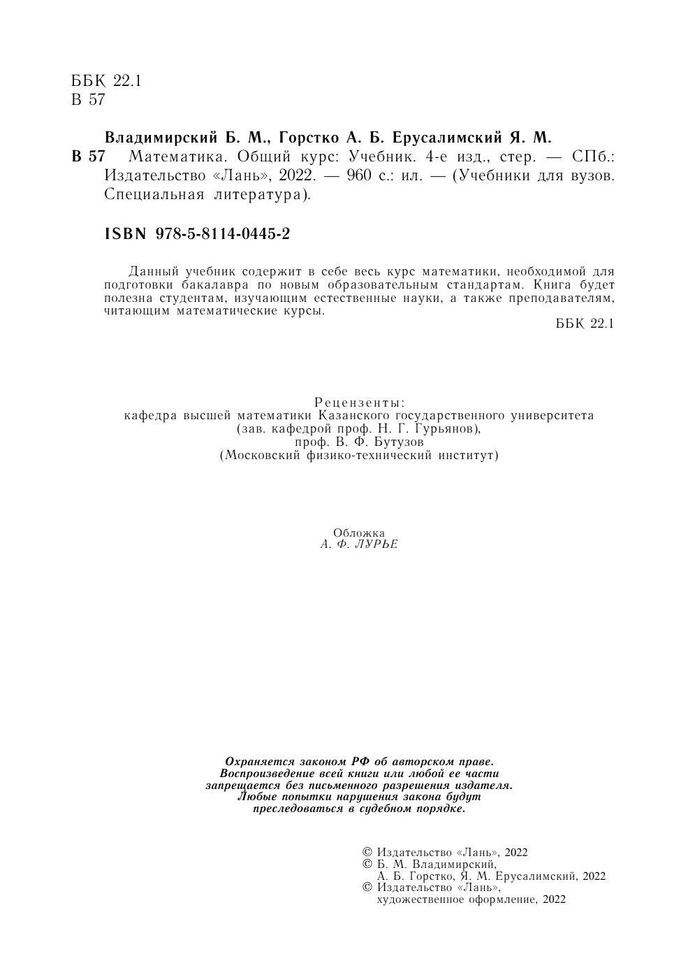 ISBN 978-5-8114-0445-2; 2022 г.