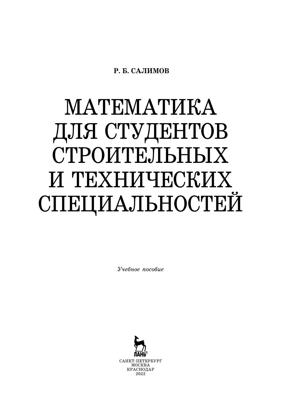 Математика для студентов строительных и технических специальностей