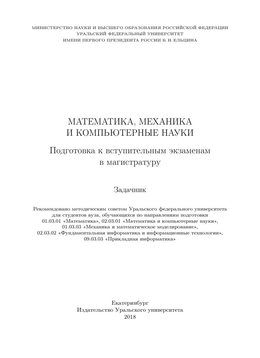 Математика, механика и компьютерные науки: Подготовка к вступительным экзаменам в магистратуру: задачник