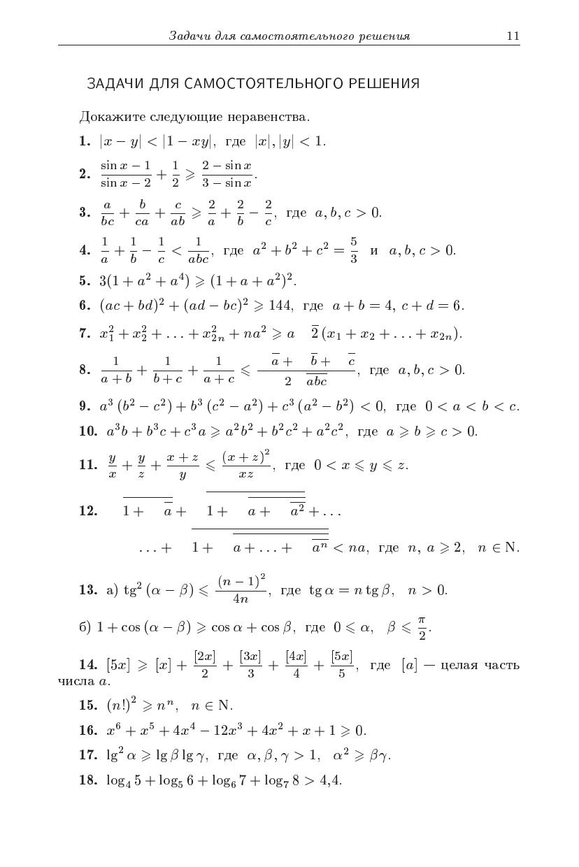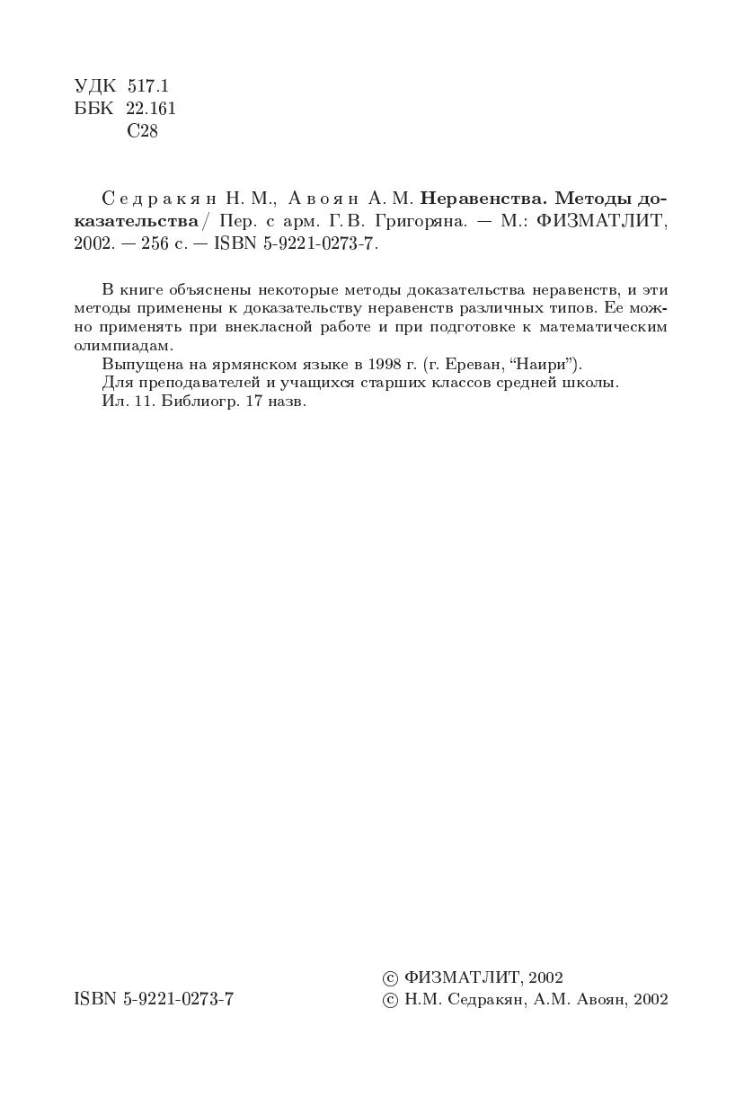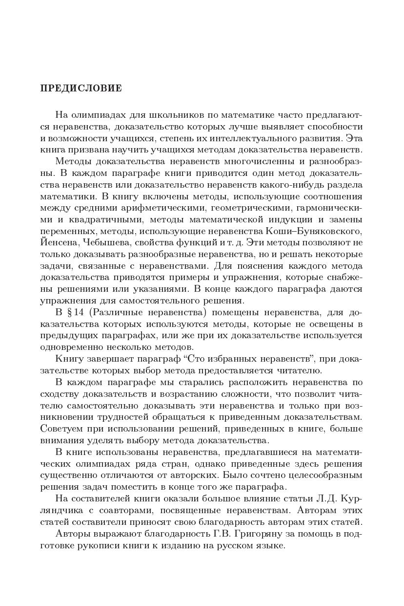 В книге объяснены некоторые методы доказательства неравенств, и эти методы применены к доказательству неравенств различных типов. Ее можно применять при внекласной работе и при подготовке к математическим олимпиадам