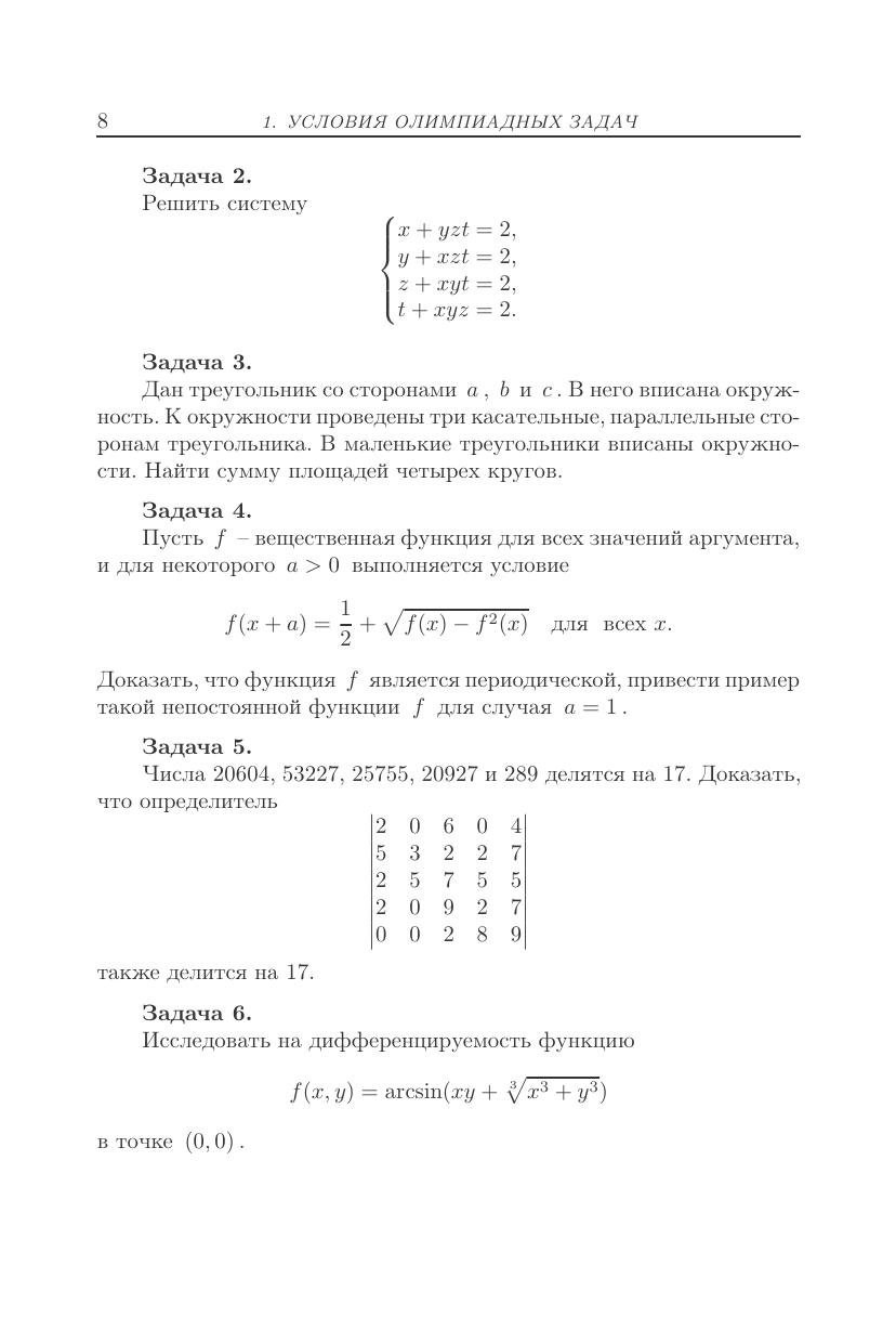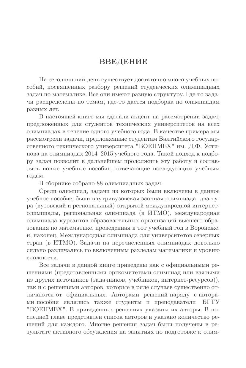 На примере олимпиадных задач по математике, предложенных студентам Санкт-Петербурга на олимпиадах разного уровня сложности в 2014–2015 учебном году, показываются разные методы и подходы к их решению. Пособие предназначено для студентов направлений подготовки и специальностей, входящих в УГС: «Информатика и вычислительная техника», «Электроника, радиотехника и системы связи», «Фотоника, приборостроение, оптические и биотехнические системы и технологии», «Электро- и теплотехника», «Машиностроение», «Авиационная и ракетно-космическая техника», а также других направлений и специальностей в области экономических, естественных и математических наук, техники и технологии.