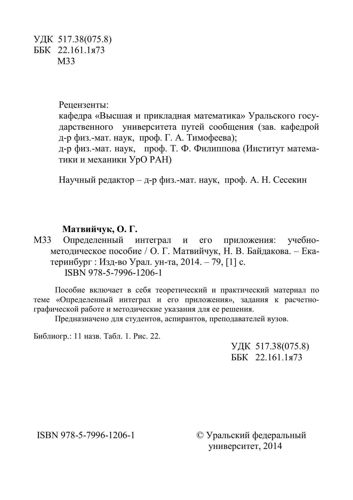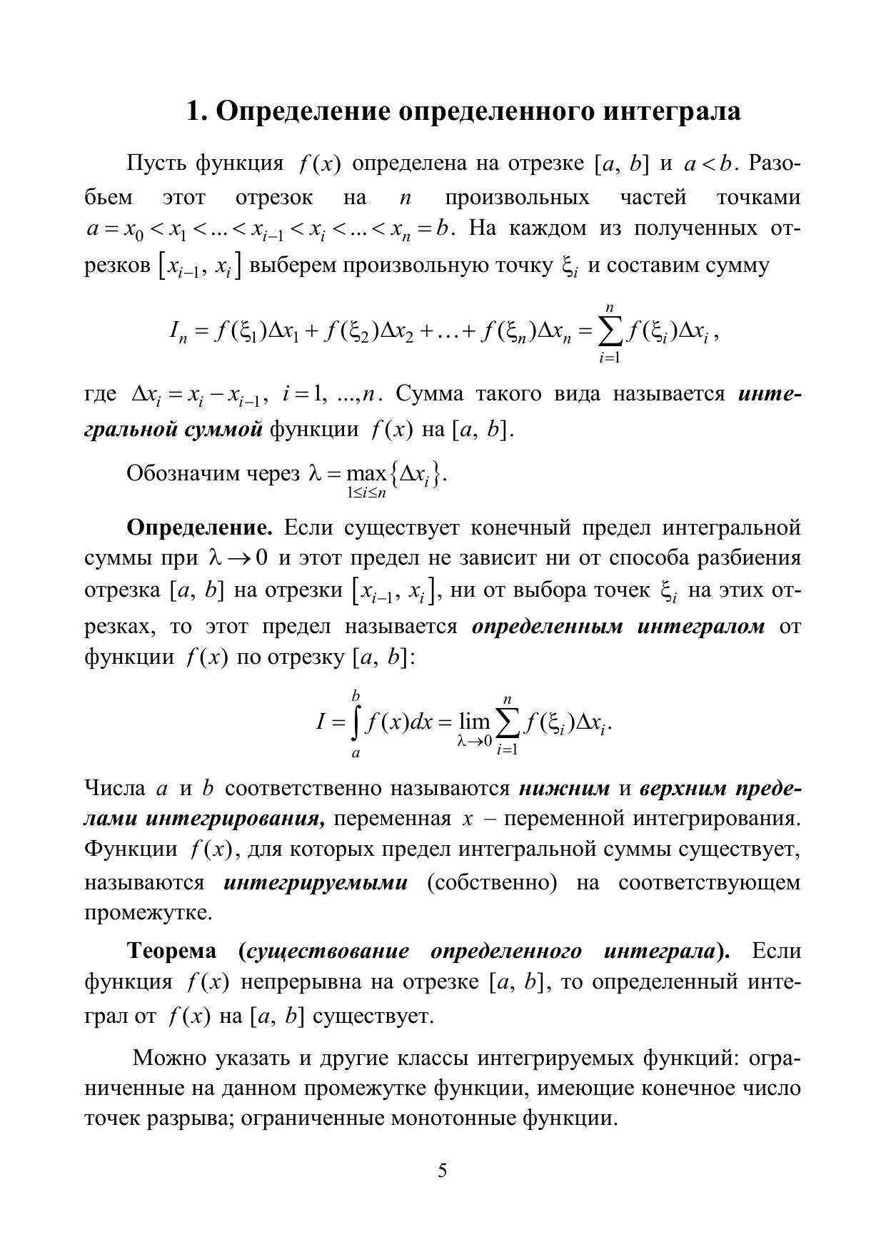 Определенный интеграл и его приложения: учебно-методическое пособие