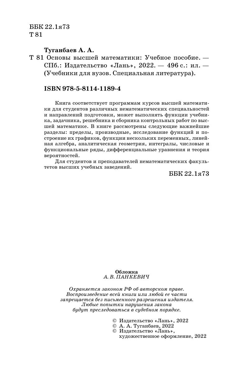 Книга соответствует программам курсов высшей математики для студентов различных нематематических специальностей и направлений подготовки, может выполнять функции учебника, задачника, решебника и сборника контрольных работ по высшей математике. В книге рассмотрены следующие важнейшие разделы: пределы, производные, исследование функций и построение их графиков, функции нескольких переменных, линейная алгебра, аналитическая геометрия, интегралы, числовые и функциональные ряды, дифференциальные уравнения и теория вероятностей. Для студентов и преподавателей нематематических факультетов высших учебных заведений.
