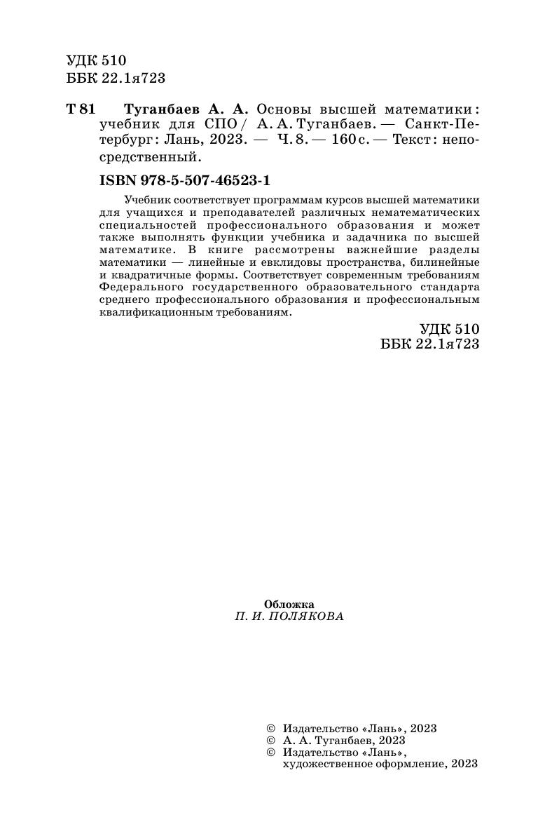 Учебник соответствует программам курсов высшей математики для учащихся и преподавателей различных нематематических специальностей профессионального образования и может также выполнять функции учебника и задачника по высшей математике. В книге рассмотрены важнейшие разделы математики — линейные и евклидовы пространства, билинейные и квадратичные формы. Соответствует современным требованиям Федерального государственного образовательного стандарта среднего профессионального образования и профессиональным квалификационным требованиям.