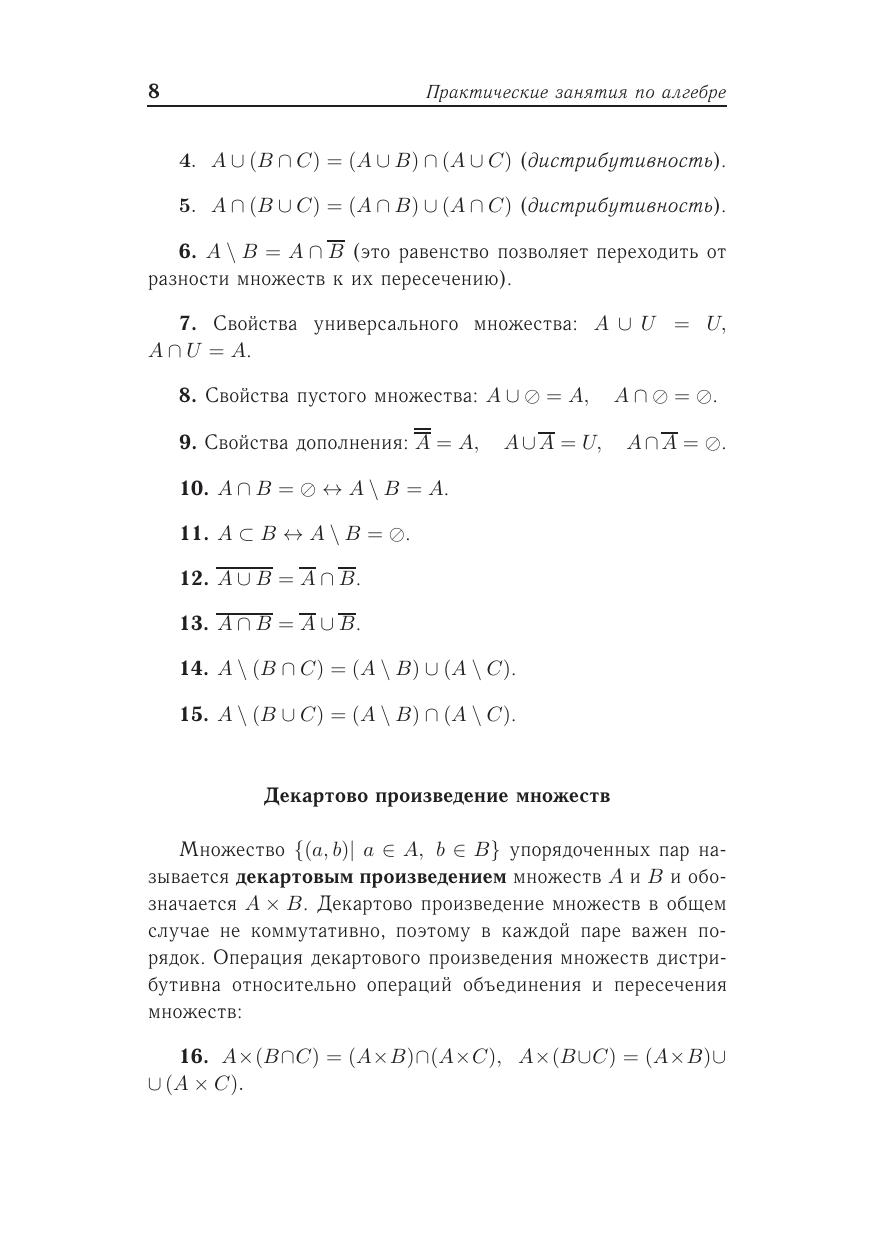 Практические занятия по алгебре. Элементы теории множеств, теории чисел, комбинаторики. Алгебраические структуры
