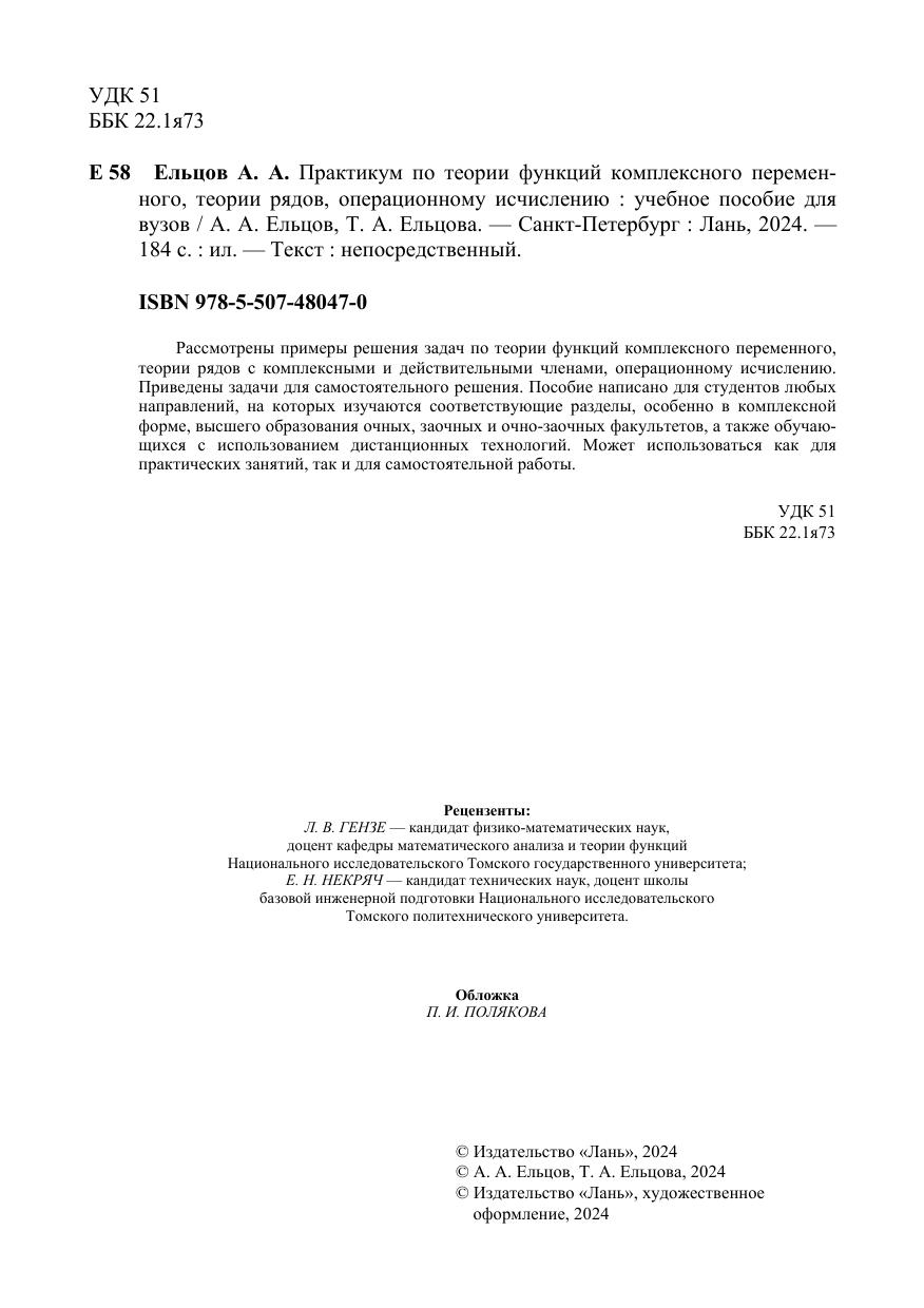 Рассмотрены примеры решения задач по теории функций комплексного переменного, теории рядов с комплексными и действительными членами, операционному исчислению. Приведены задачи для самостоятельного решения. Пособие написано для студентов любых направлений, на которых изучаются соответствующие разделы, особенно в комплексной форме, высшего образования очных, заочных и очно-заочных факультетов, а также обучающихся с использованием дистанционных технологий. Может использоваться как для практических занятий, так и для самостоятельной работы.