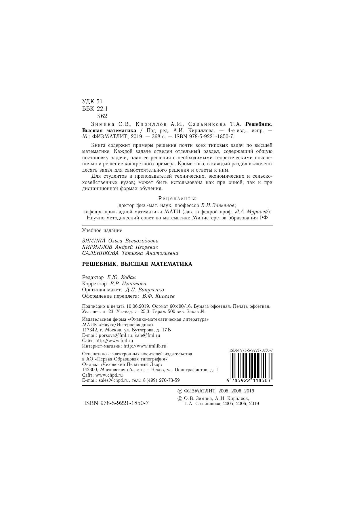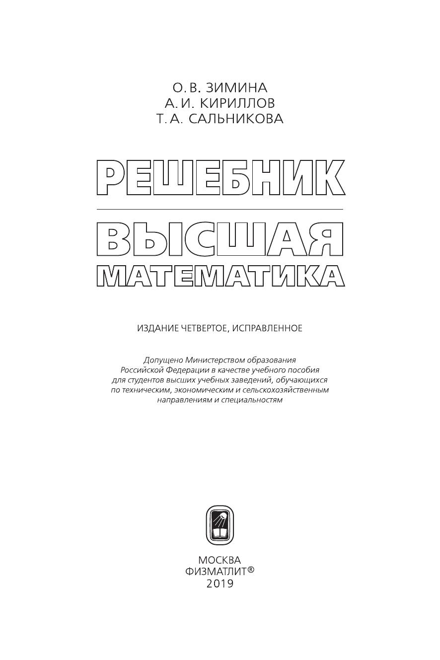 Книга содержит примеры решения почти всех типовых задач по высшей математике. Каждой задаче отведен отдельный раздел, содержащий общую постановку задачи, план ее решения с необходимыми теоретическими пояснениями и решение конкретного примера. Кроме того, в каждый раздел включены десять задач для самостоятельного решения и ответы к ним. Для студентов и преподавателей технических, экономических и сельскохозяйственных вузов; может быть использована как при очной, так и при дистанционной формах обучения.