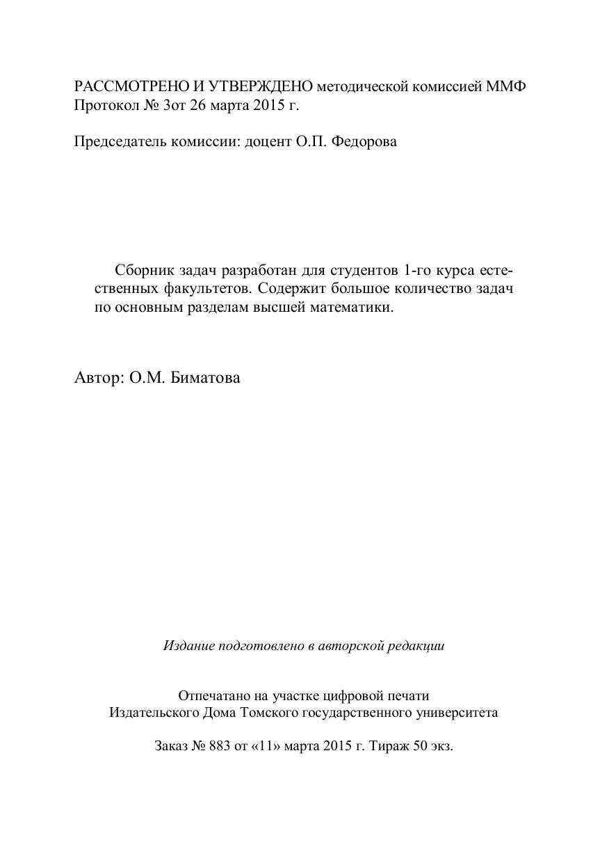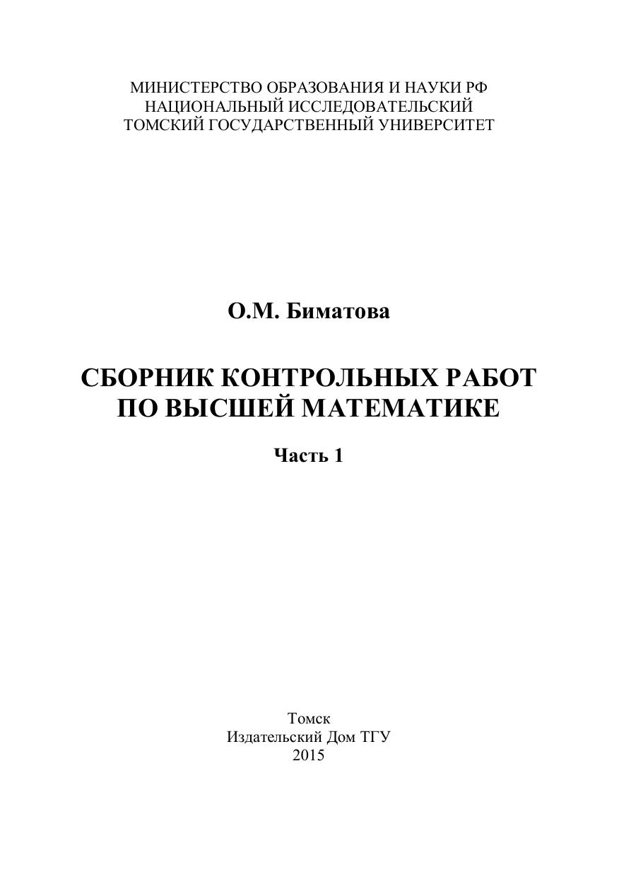 Сборник задач разработан для студентов 1-го курса естественных факультетов. Содержит большое количество задач по основным разделам высшей математики