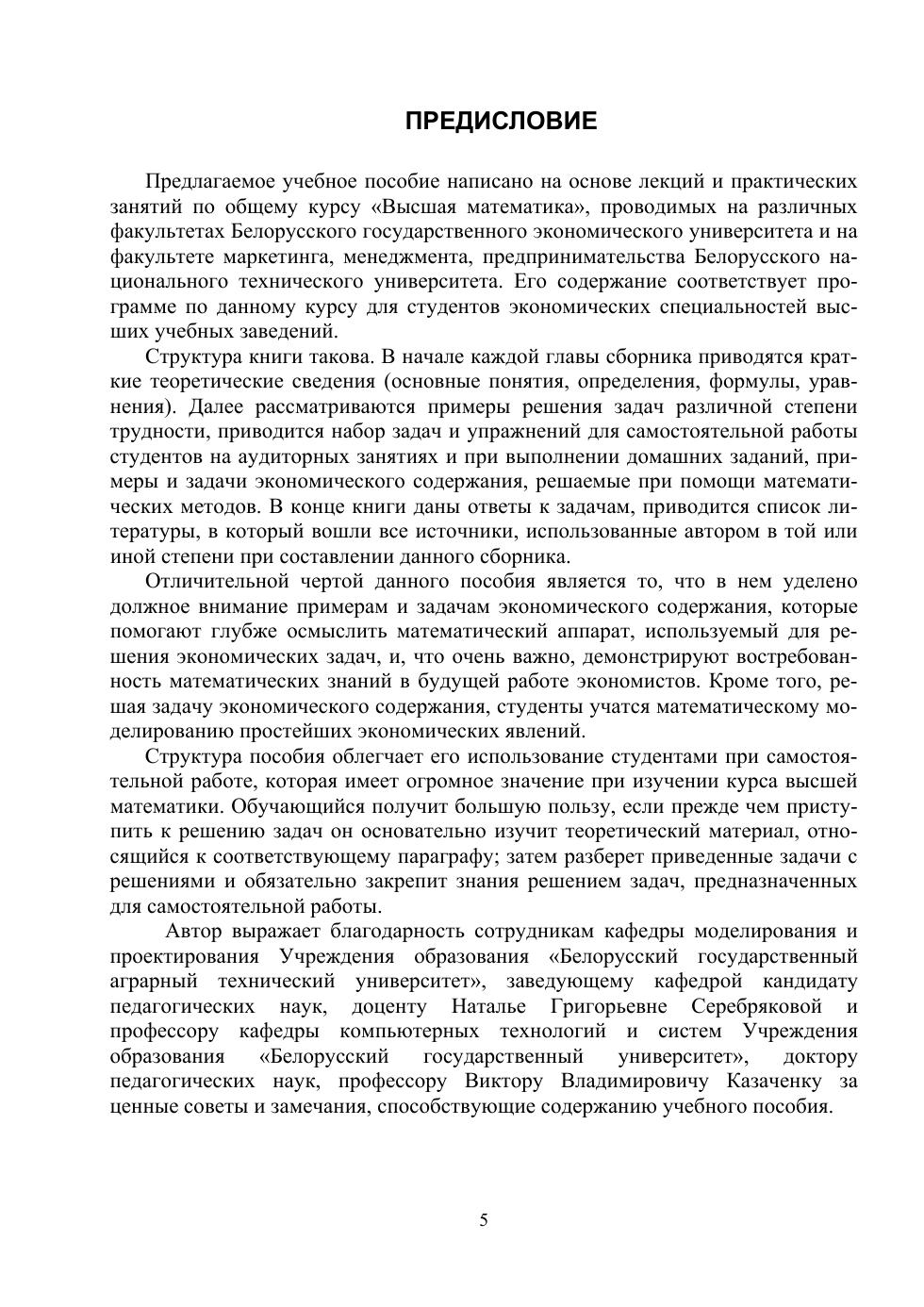 Включает задачи и упражнения по всем разделам общего курса высшей математики, которые входят в программу для студентов экономических специальностей, и отражает профессиональную направленность преподавания математики.