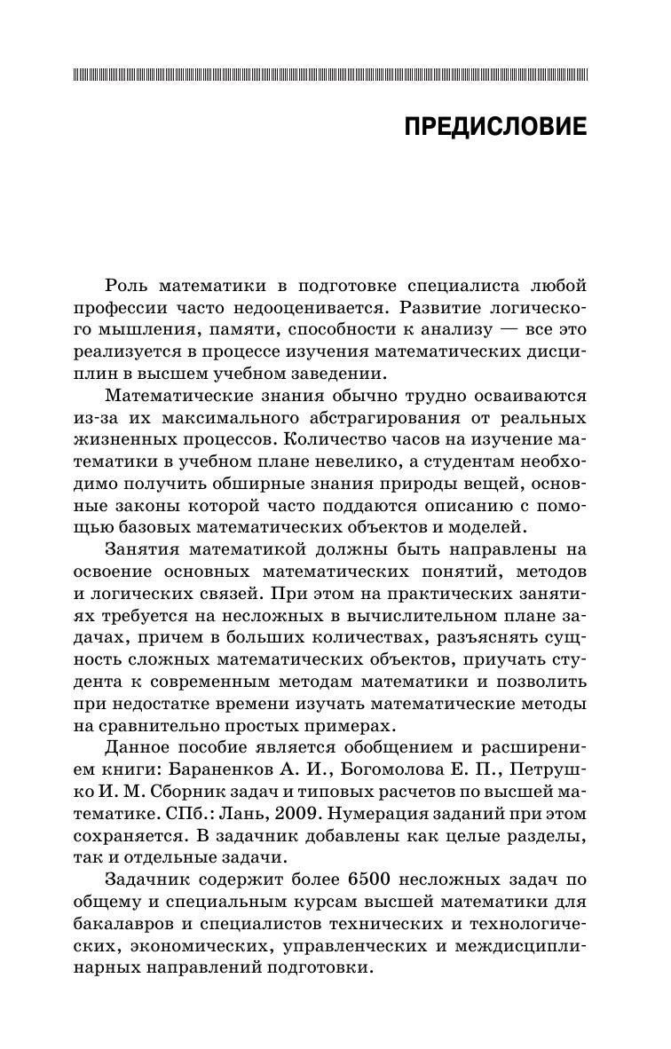 Задачник содержит более 6500 несложных задач по общему и специальным курсам высшей математики для бакалавров и специалистов технических и технологических, экономических, управленческих и междисциплинарных направлений подготовки. Задачи могут быть использованы как для аудиторной, так и для самостоятельной работы студентов. На последних страницах помещены справочные материалы по темам, которые в этом нуждаются.