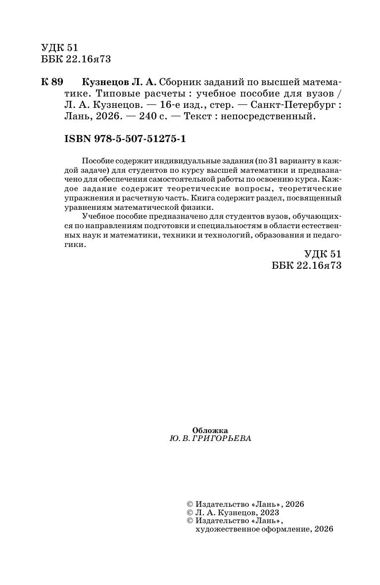 Пособие содержит индивидуальные задания (по 31 варианту в каждой задаче) для студентов, по курсу высшей математики и предназначено для обеспечения самостоятельной работы по освоению курса. Каждое задание содержит теоретические вопросы, теоретические упражнения и расчетную часть. Книга содержит раздел, посвященный уравнениям математической физики. Учебное пособие предназначено для студентов вузов, обучающихся по направлениям подготовки и специальностям в области естественных наук и математики, техники и технологий, образования и педагогики.