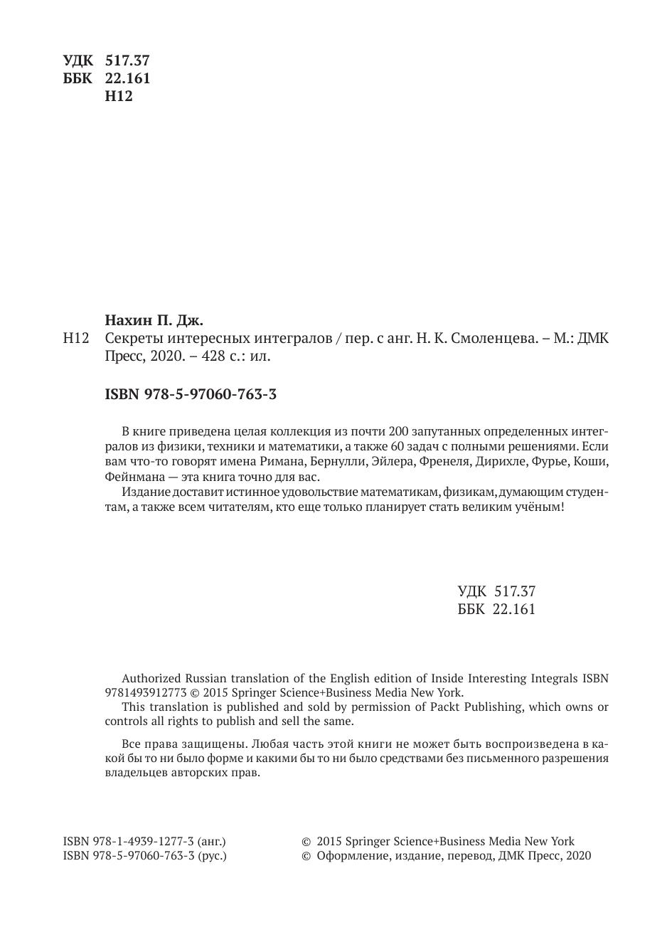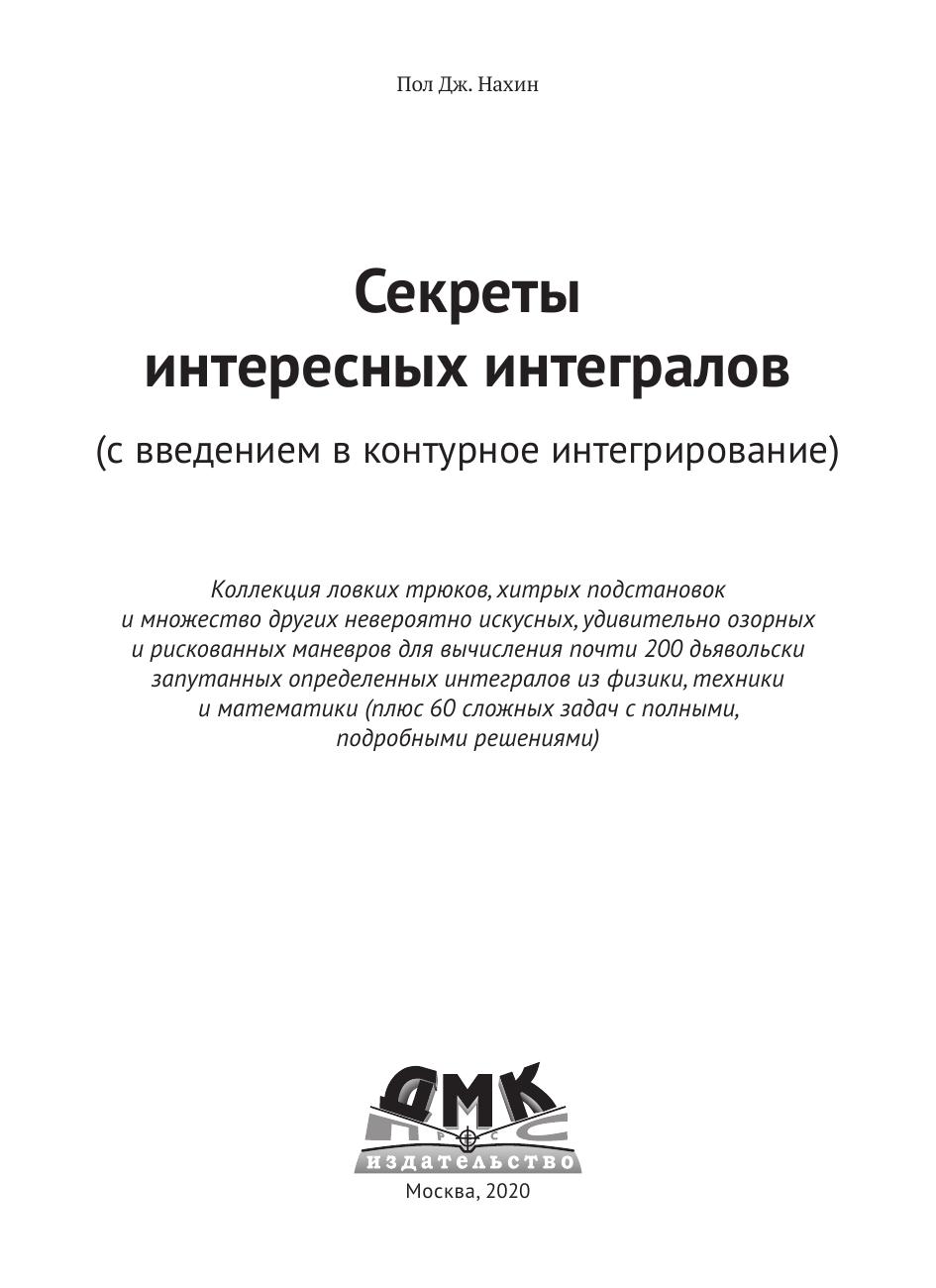 Коллекция ловких трюков, хитрых подстановок и множество других невероятно искусных, удивительно озорных и дьявольски соблазнительных маневров для вычисления почти 200 запутанных определенных интегралов из физики, техники и математики плюс 60 сложных задач с полными, подробными решениями!