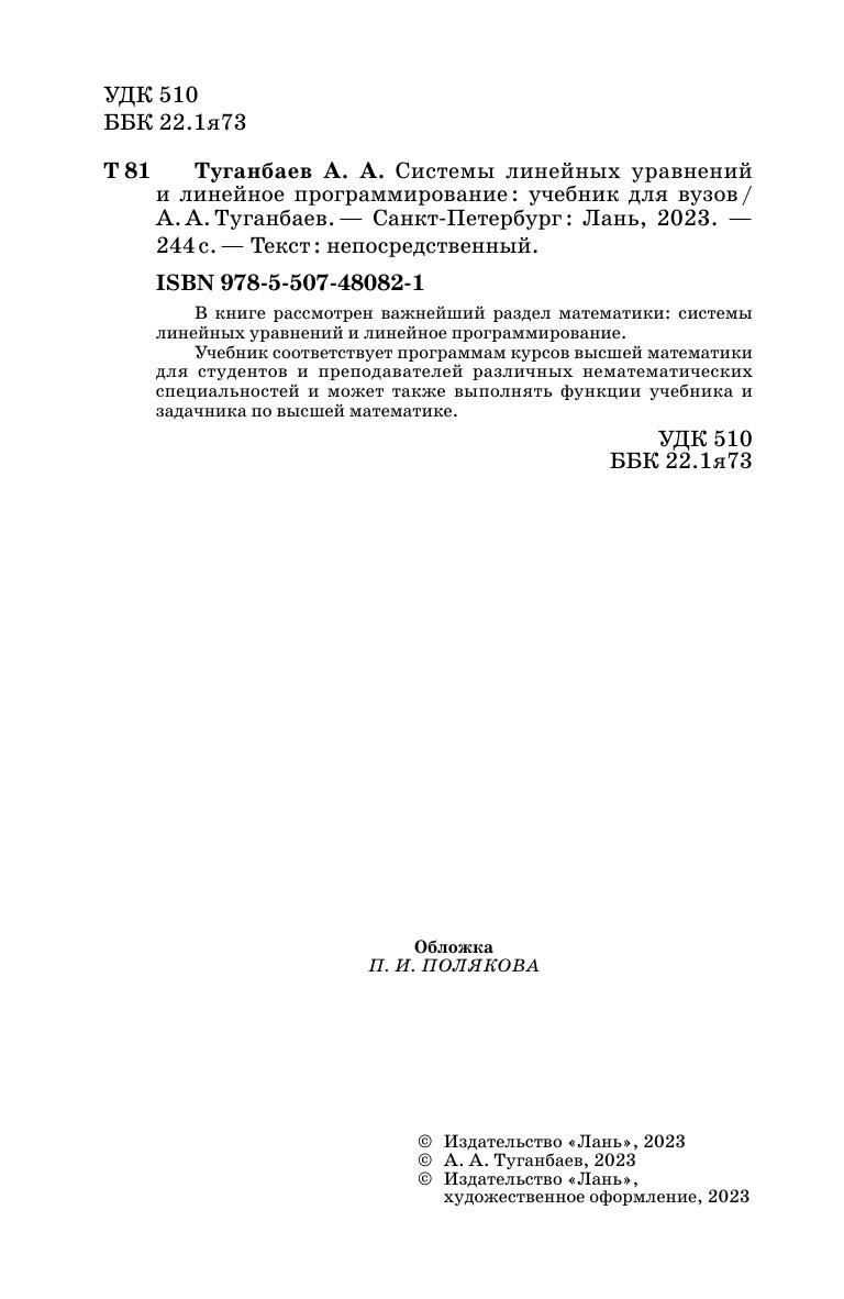 В книге рассмотрен важнейший раздел математики: системы линейных уравнений и линейное программирование. Учебник соответствует программам курсов высшей математики для студентов и преподавателей различных нематематических специальностей и может также выполнять функции учебника и задачника по высшей математике.