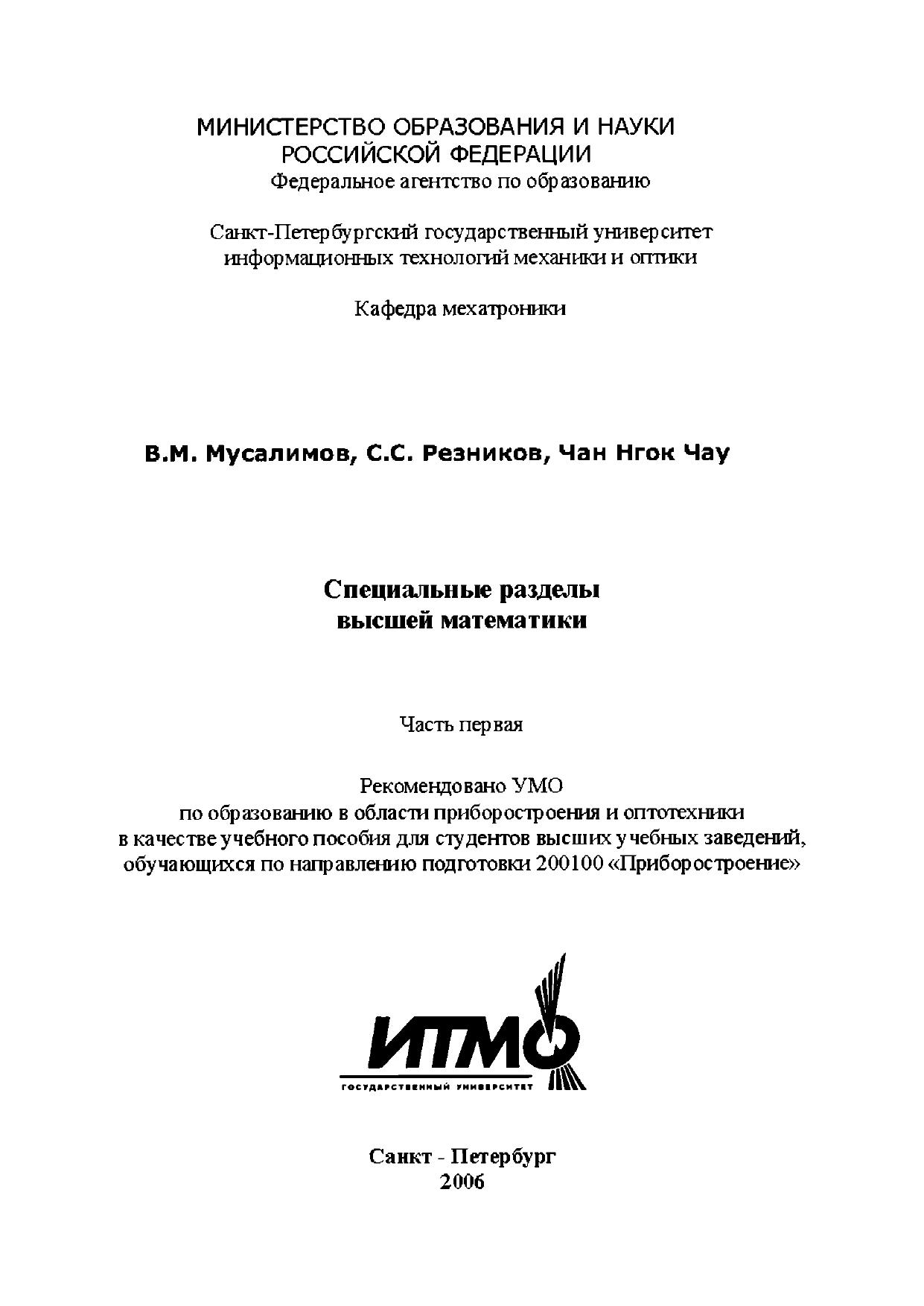 Специальные разделы высшей математики