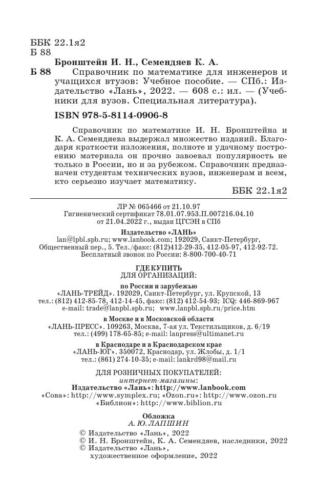 Авторы: Бронштейн И. Н., Семендяев К. А.