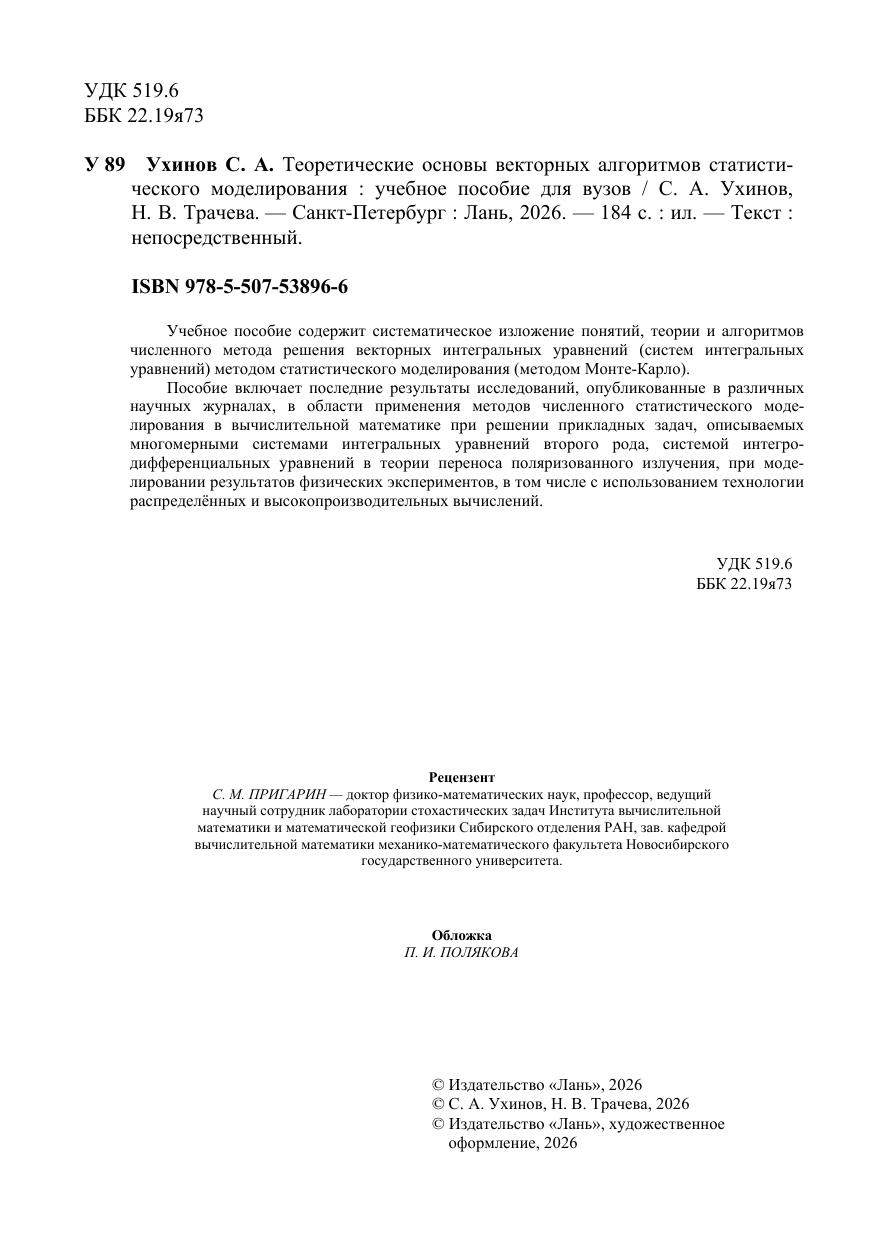 Учебное пособие содержит систематическое изложение понятий, теории и алгоритмов численного метода решения векторных интегральных уравнений (систем интегральных уравнений) методом статистического моделирования (методом Монте-Карло). Пособие включает последние результаты исследований, опубликованные в различных научных журналах, в области применения методов численного статистического моделирования в вычислительной математике при решении прикладных задач, описываемых многомерными системами интегральных уравнений второго рода, системой интегро-дифференциальных уравнений в теории переноса поляризованного излучения, при моделировании результатов физических экспериментов, в том числе с использованием технологии распределённых и высокопроизводительных вычислений.