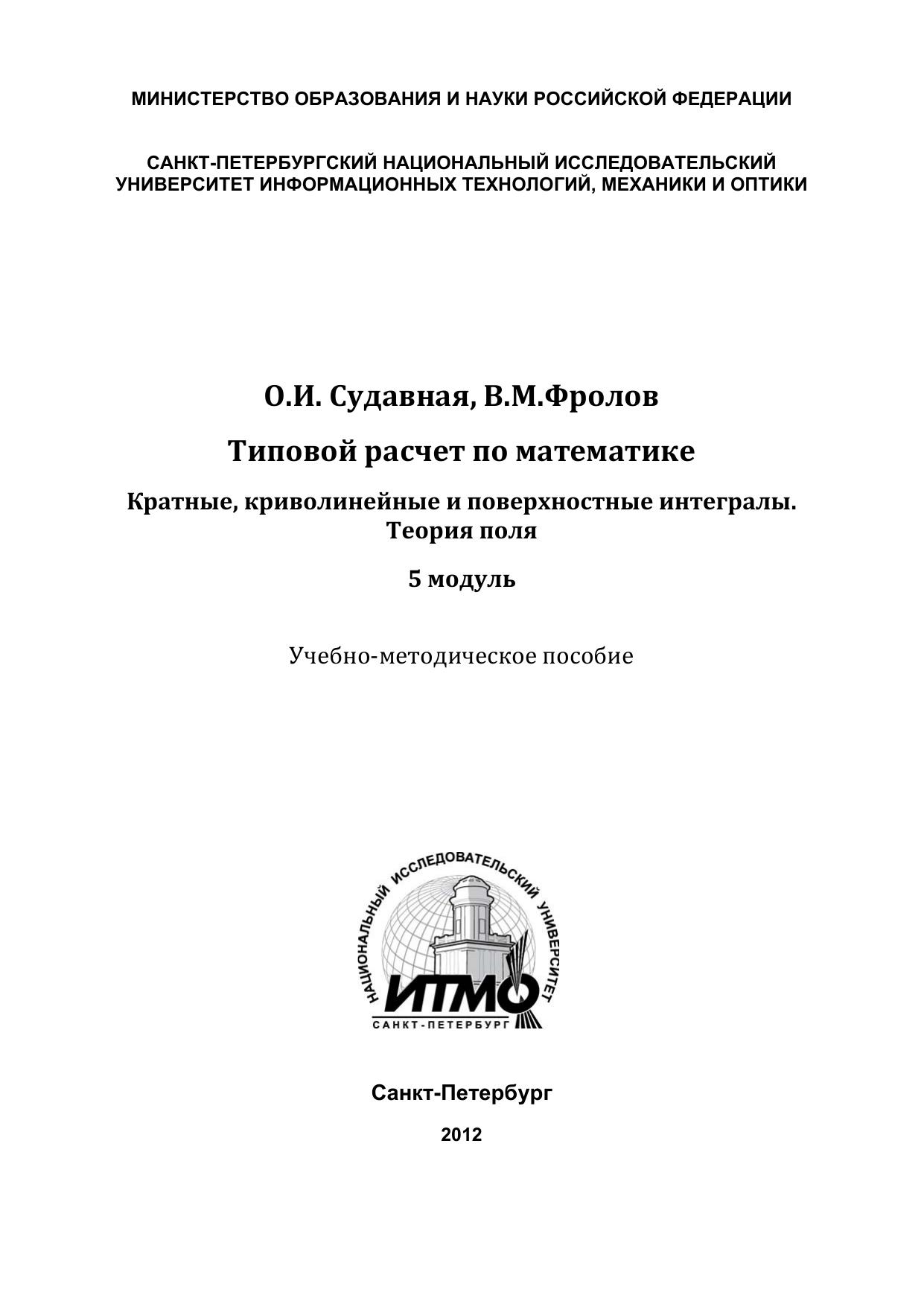 Типовой расчет. Кратные, криволинейные и поверхностные интегралы. Теория поля. 5 модуль