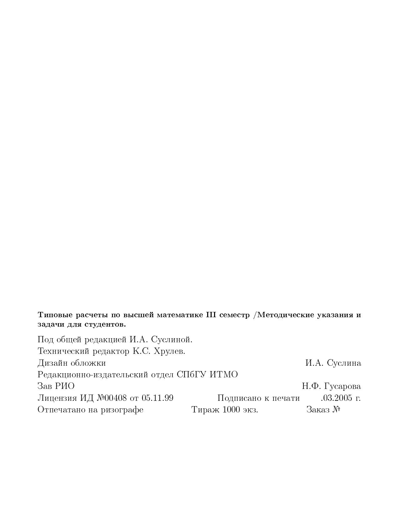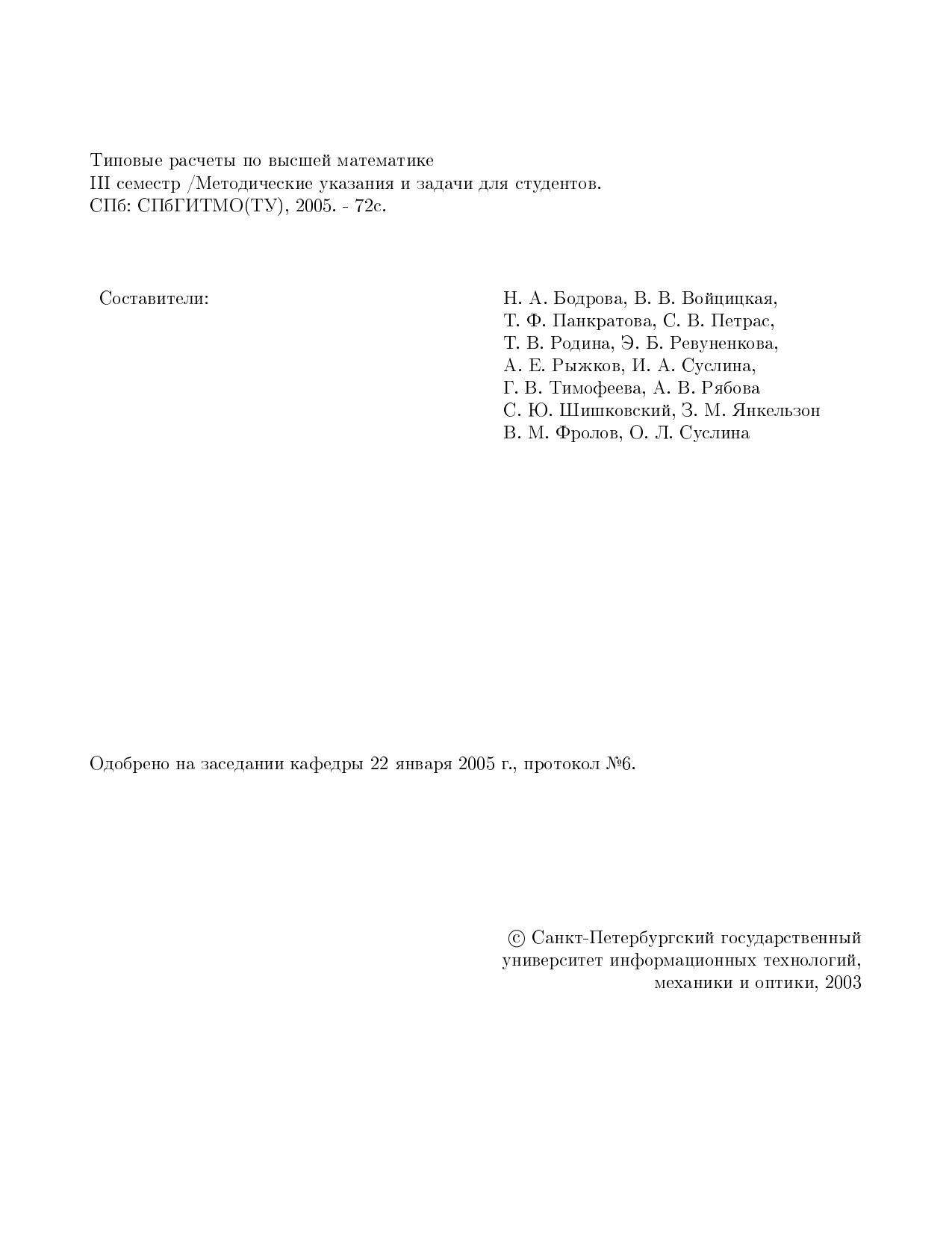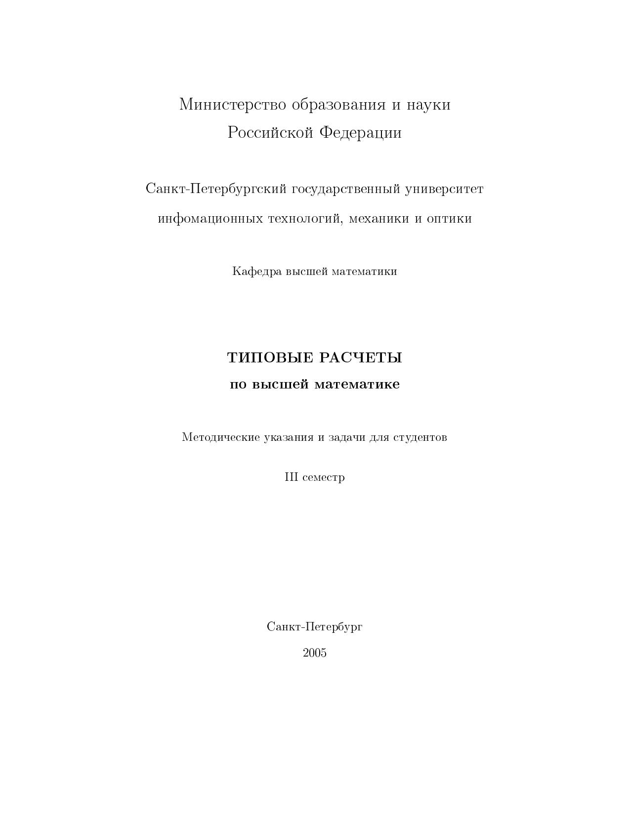 Типовые расчёты по высшей математике. 3 семестр. Методические указания и задачи для студентов